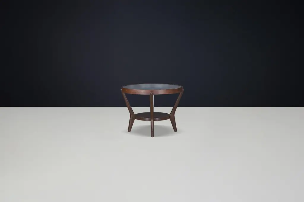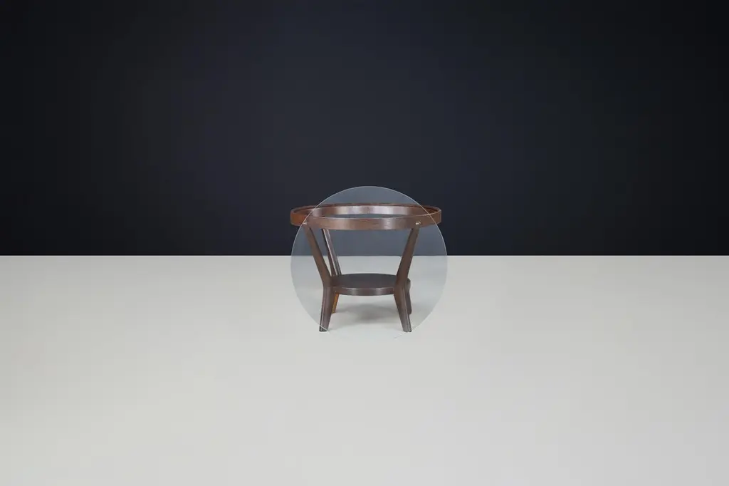Karel Koželka & Antonín Kropáček for Interiér Praha, Coffee Table in Oak and Glass, Czechia, 1960s — Multiple AvailableDesigned by celebrated Czech designers Karel Koželka and Antonín Kropáček and produced by Interiér Praha in the 1960s, this iconic coffee table is a standout example of Czechoslovak mid-century modernism. The table’s clean geometry, modest scale, and quality materials reflect the duo’s mastery of functional design with refined sculptural presence.Each table features a round solid wood frame — primarily oak — with a circular glass top inset into the rim. Three slightly splayed legs connect to a lower circular shelf, forming a sturdy triangular structure that is both elegant and architectural. The balance of natural material and geometric clarity makes this table a timeless addition to both vintage and contemporary interiors.The tables are offered in a large quantity and remain in good original condition, with varying tones of wood and patina. Each piece shows normal signs of age and use, including minor scuffs and characterful wear, which contribute to their authentic vintage appeal. Wood tones range from lighter golden oak to deeper walnut finishes — perfect for designers or collectors seeking matching forms with subtle individuality.These tables are ideal for residential, retail, or hospitality settings and can be used as coffee tables, side tables, or accent pieces. With their enduring design and strong provenance, they offer both aesthetic and functional value.Dimensions (each):Diameter: 73 cm (28.7 in)Height: 56 cm (22 in)Designers: Karel Koželka & Antonín KropáčekManufacturer: Interiér PrahaOrigin: Czech RepublicYear: 1960sMaterials: Oak, glassCondition: Good original condition; signs of use and varied patinaPlease inquire for specific quantities and wood tones available.