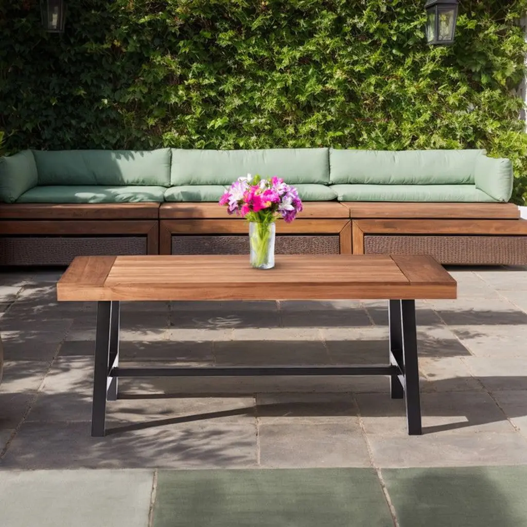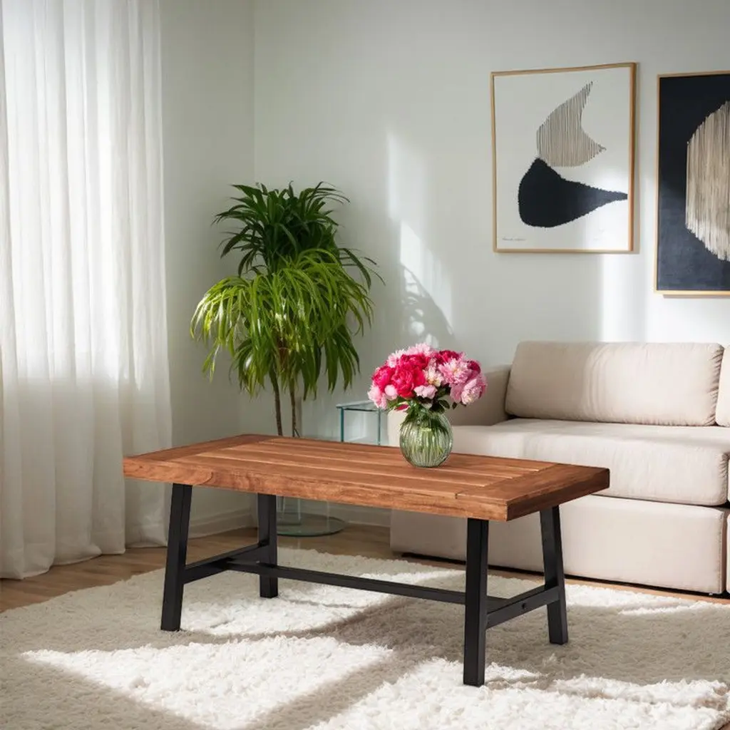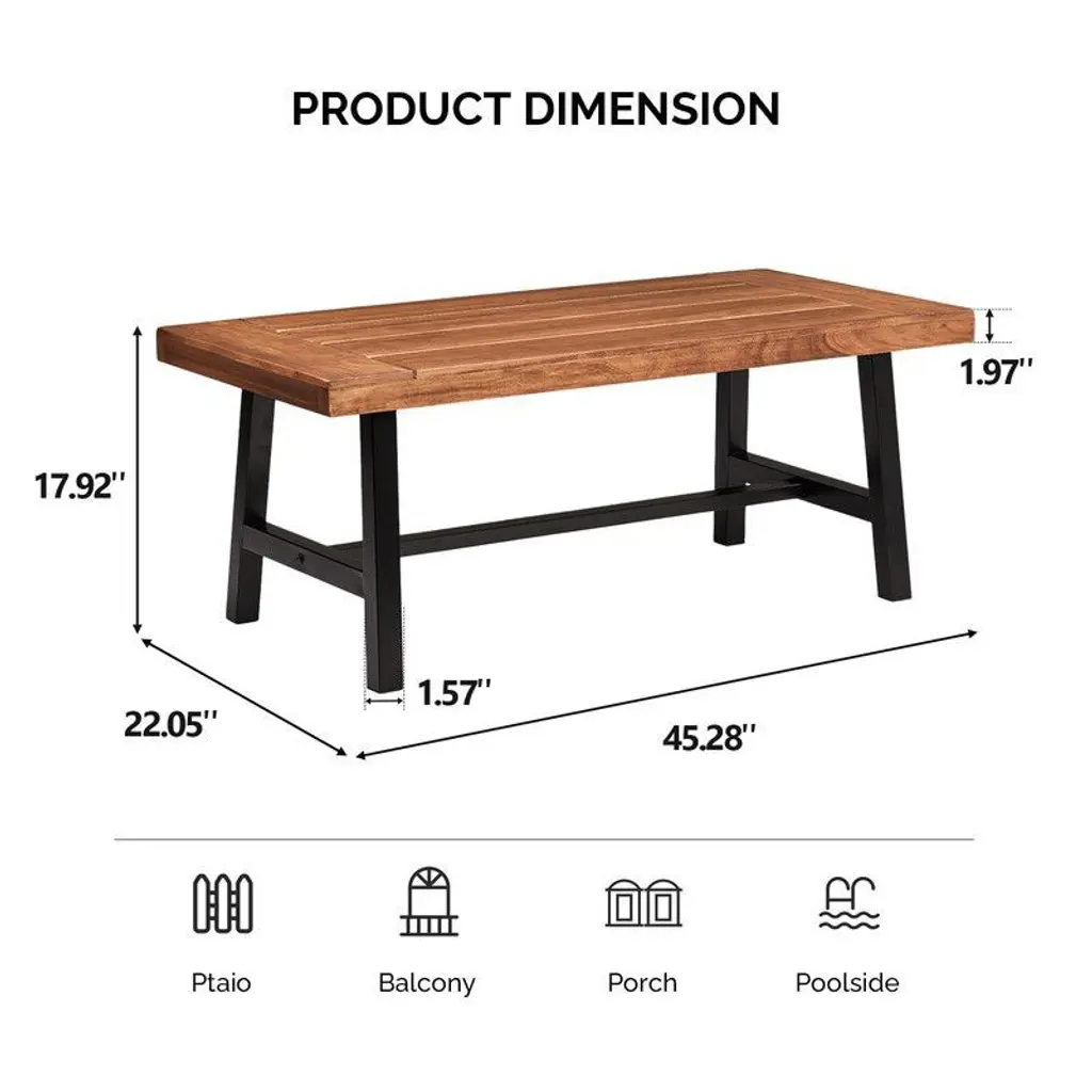 Karl Home Patio Poplar Wood Coffee Table With Metal Legs