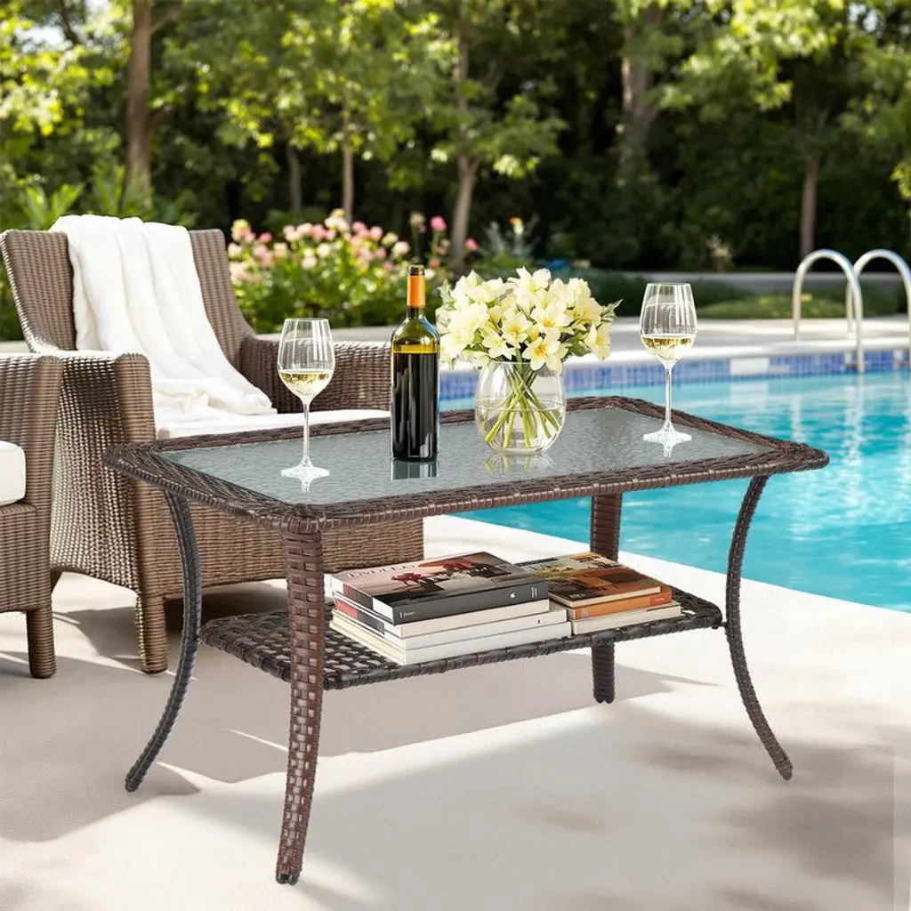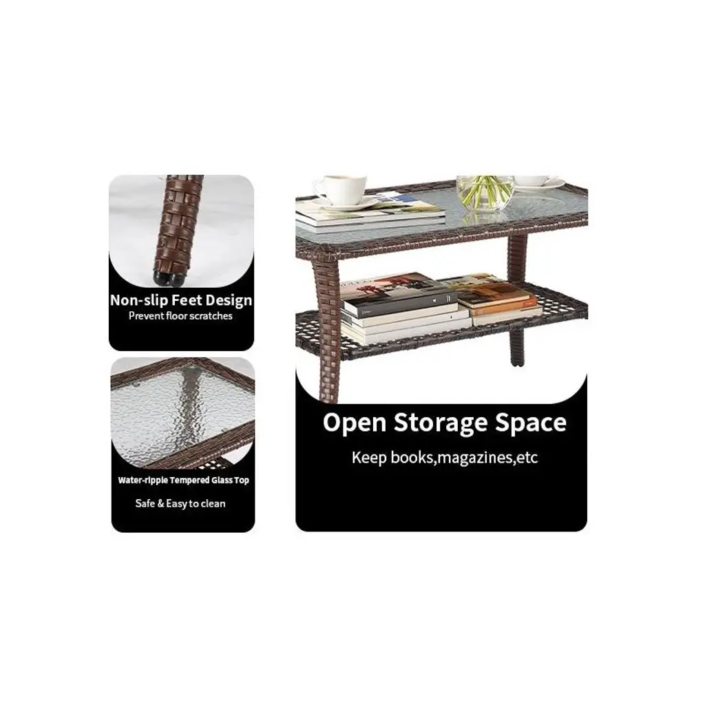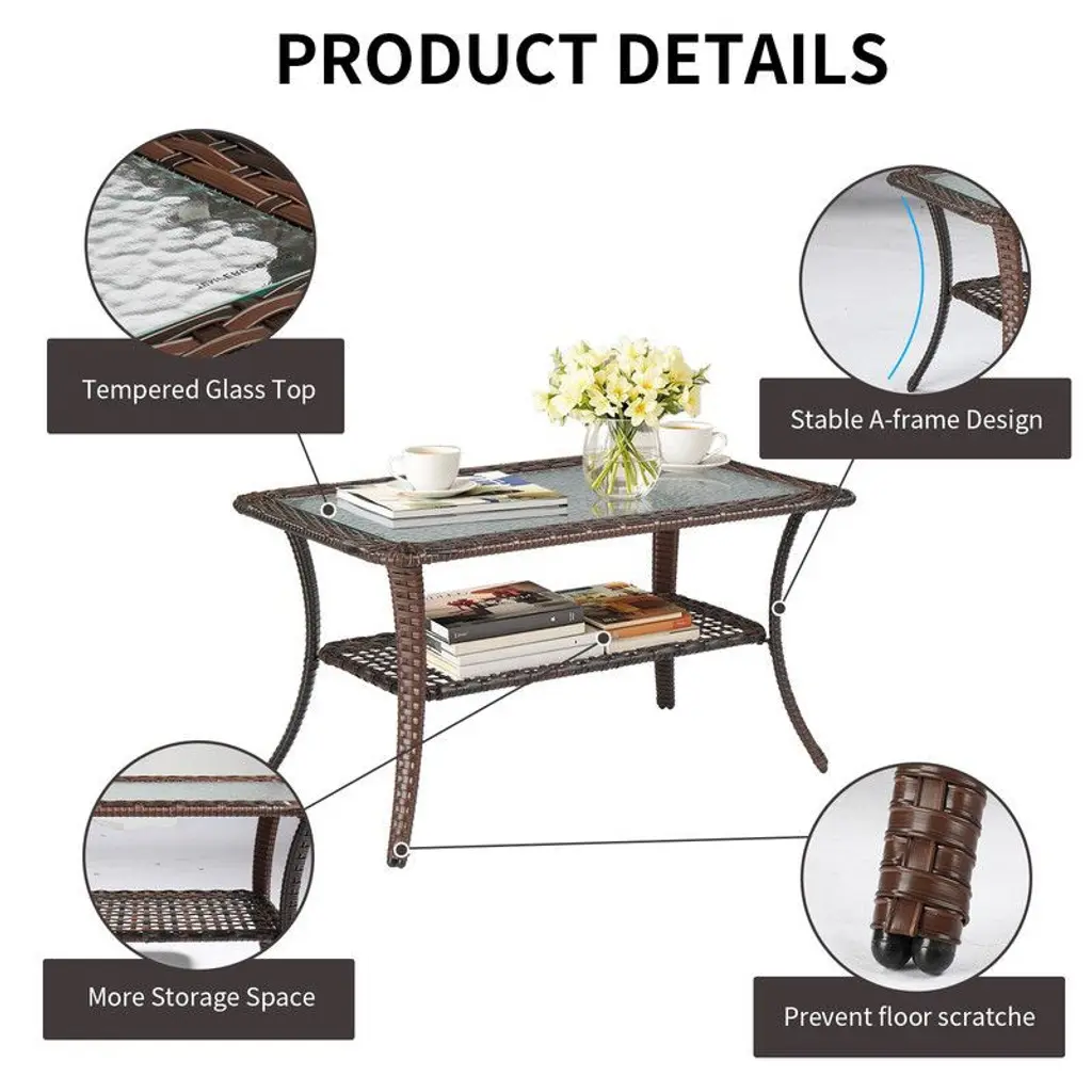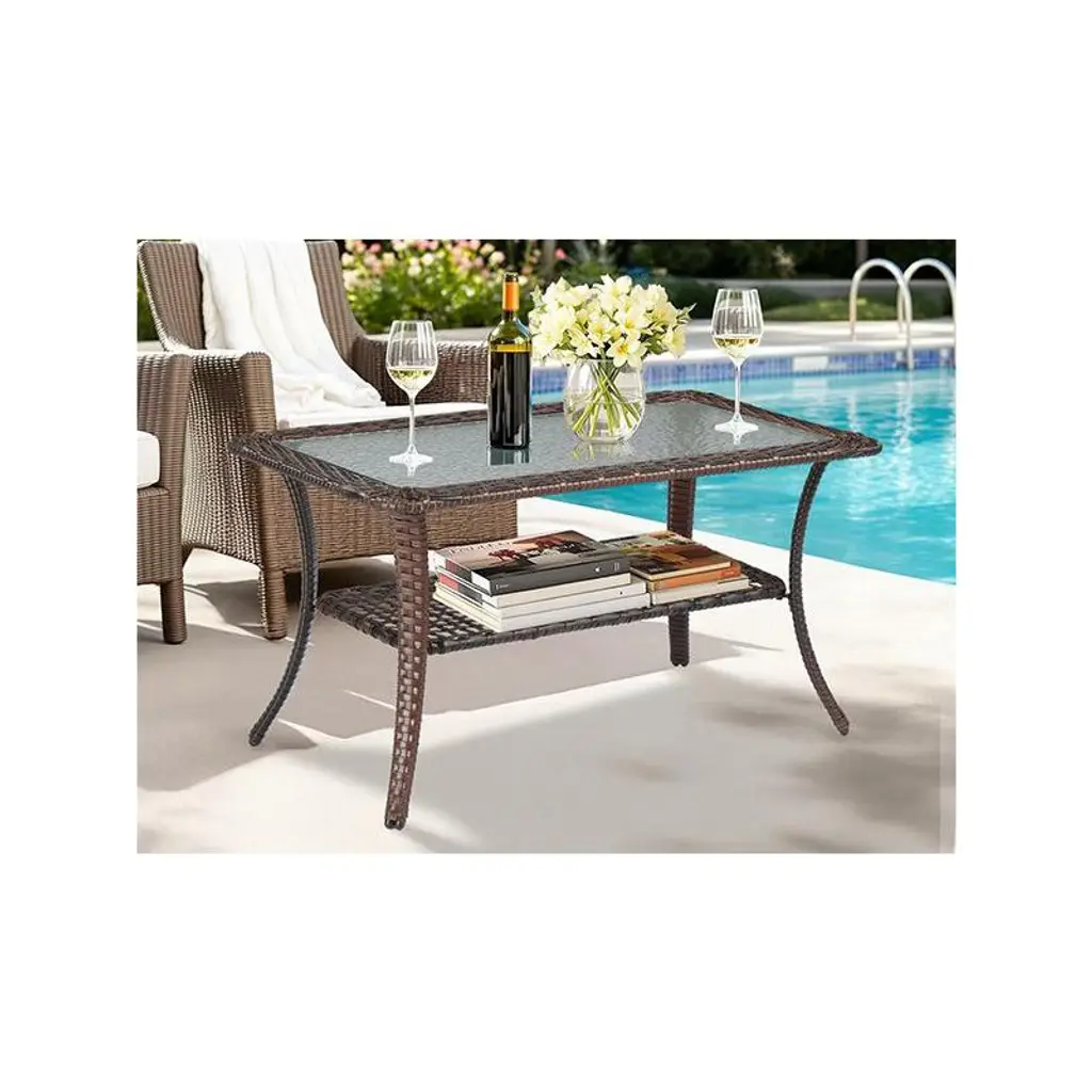 Karl Home|patio Wicker Coffee Table With Glass Top
