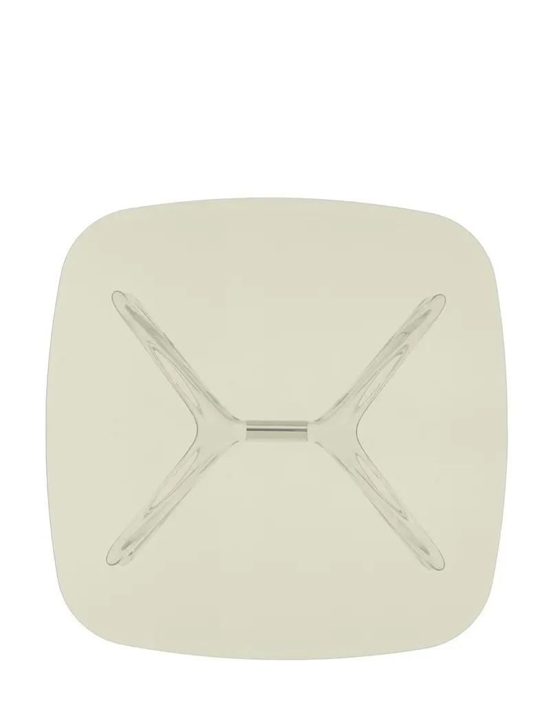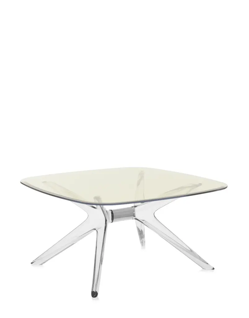 Kartell lifestyle enhances the living room with Philippe Starck’s Blast, a coffee table square with rounded corners and clear bases and tops. The design is a development of the Sir Gio table. The central core of the base is chrome-plated.Dimensions: Height 15.75 in.; Width 31.5 in.; Depth 31.5 in.; Unit weight: 15 kg. Made of: Glass top/ thermoplastic technopolymer base.