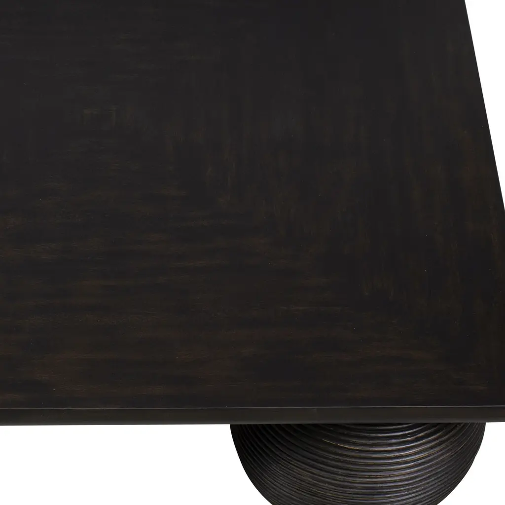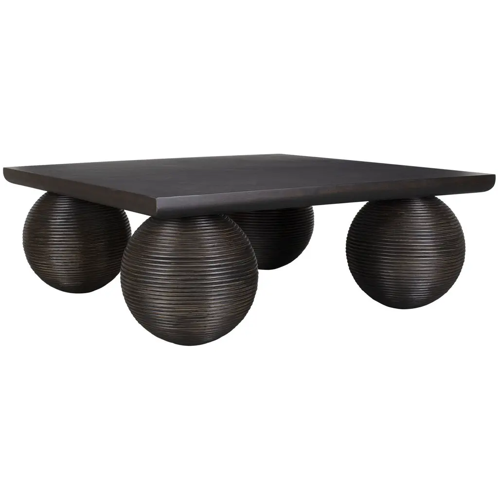 This Coffee Table Is Sure To Be The Focal Point Of Any Room, Featuring Oversized Rattan-covered Spheres As Legs. The Table Is Crafted From Mango-wood Veneer And Finished In A Distressed Black.