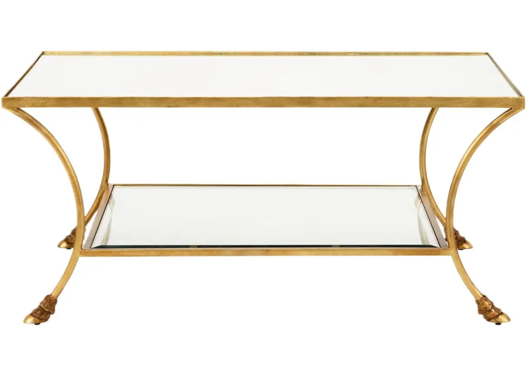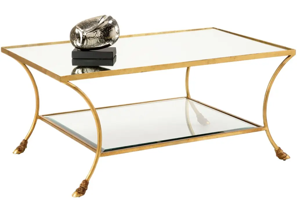 This Kendal Coffee Table with its mirrored glass and an Iron frame is sure to be a classic and sleek addition to your living space.
