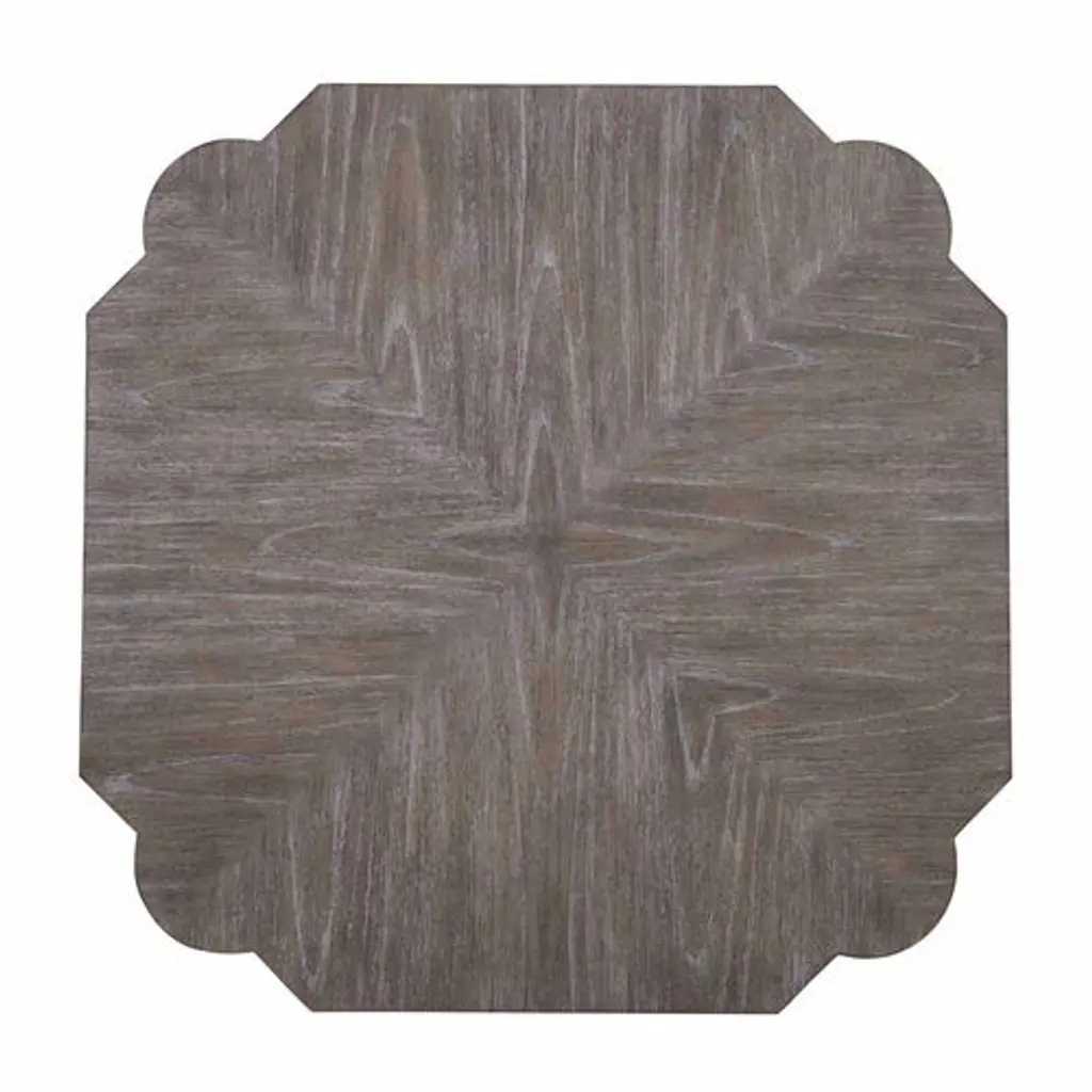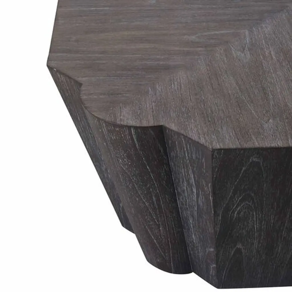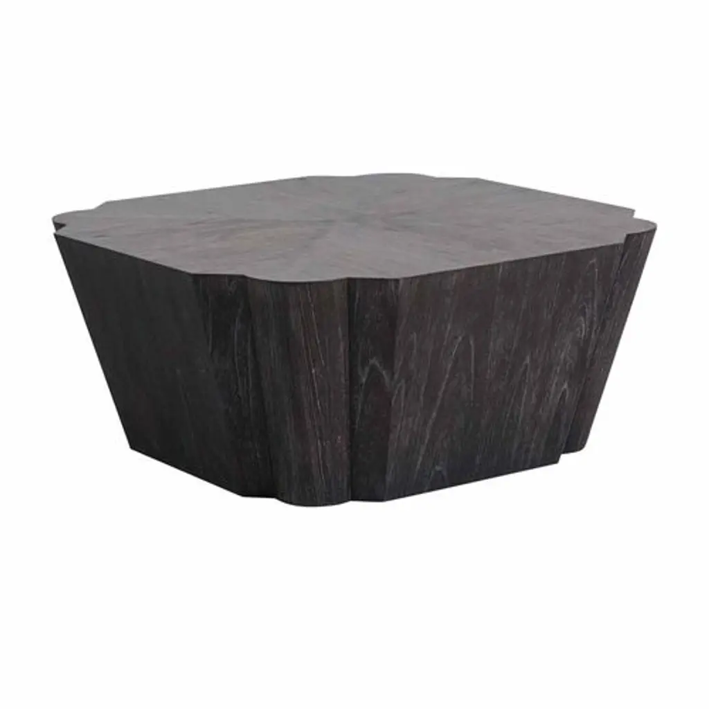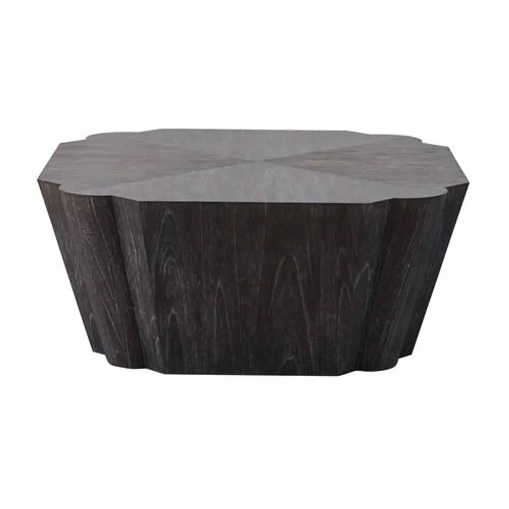 The Kenwood Coffee Table, with its soft scalloped corners and two tone brushed gray oak and dark gray cerused oak finishes, makes a unique, moderately sized coffee table.