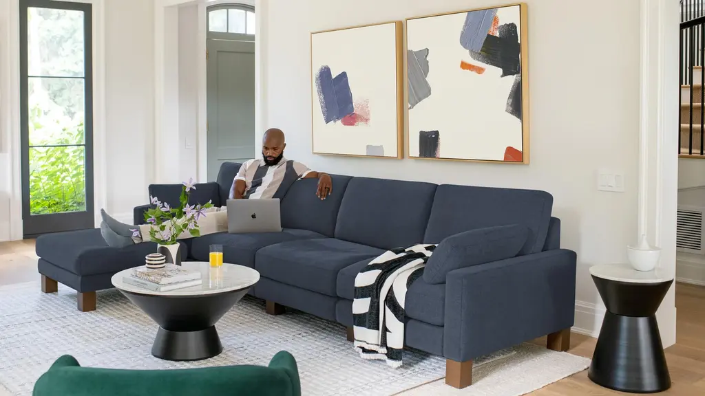The Kettle Coffee Table is a spun metal coffee table featuring an architectural, geometric form. It fits perfectly in modern, minimalist settings or a more traditional scheme. The finish options help it adapt: choose a sleek black base or chic brass, and pair with a simple wood top or an elegant Carrara marble one. Its circular shape makes it perfect for fitting inside a sectional, keeping the table within everyone's reach. | Burrow Kettle Coffee Table