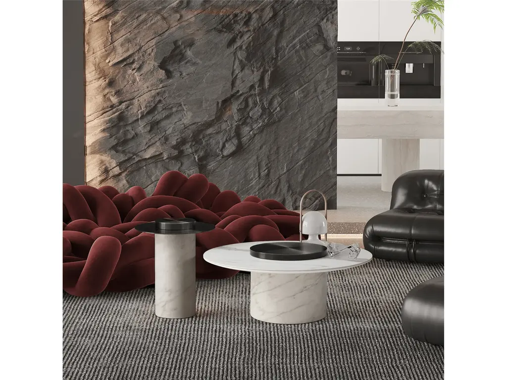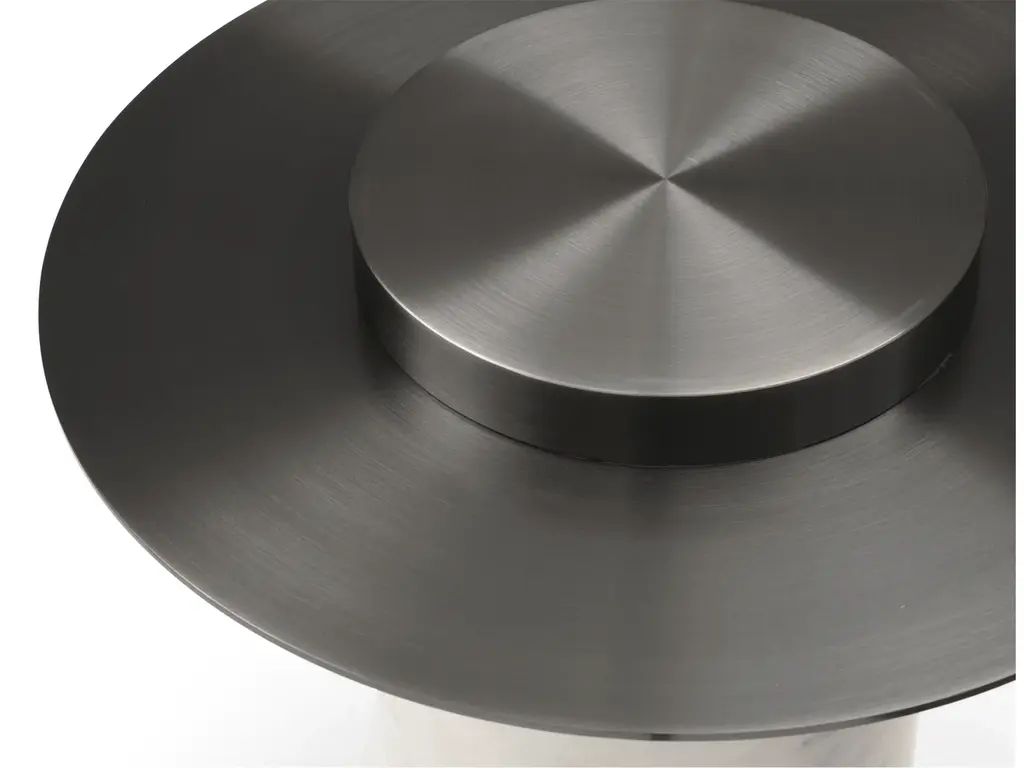 Kevin Coffee Table comes with Stainless-Steel Top and Wood With Marble Paper Base.