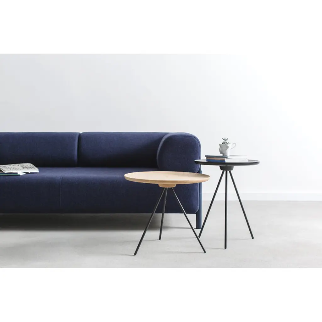 The Key coffee table by Hem consists of a solid ash top resting on slender metal legs. The most stunning feature of the design is the natural grain adorning the tabletop, creating fascinating patterns on the wooden surface. The tripod leg structure gives the table a light, contemporary appearance without compromising on sturdiness and functionality. The Key coffee table is a timeless addition to any interior whether alone or in a cluster of several tables, placed next to an armchair or in the center of a sofa set, for example. Delivered flat-packed, the table is easy to assemble without the need for any tools: the tabletop can simply be screwed onto the tripod legs. The table is designed by design studio GamFratesi.