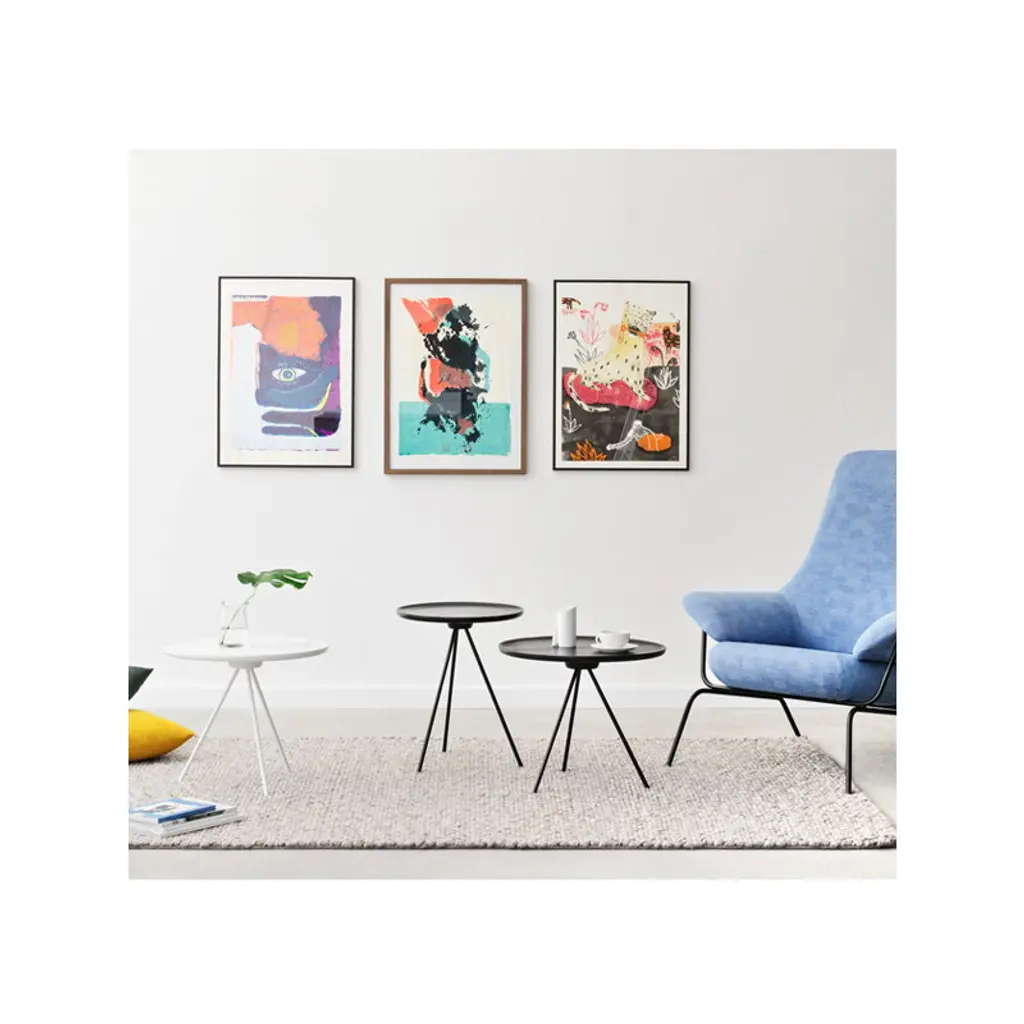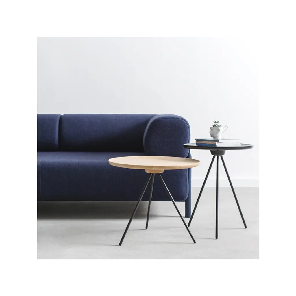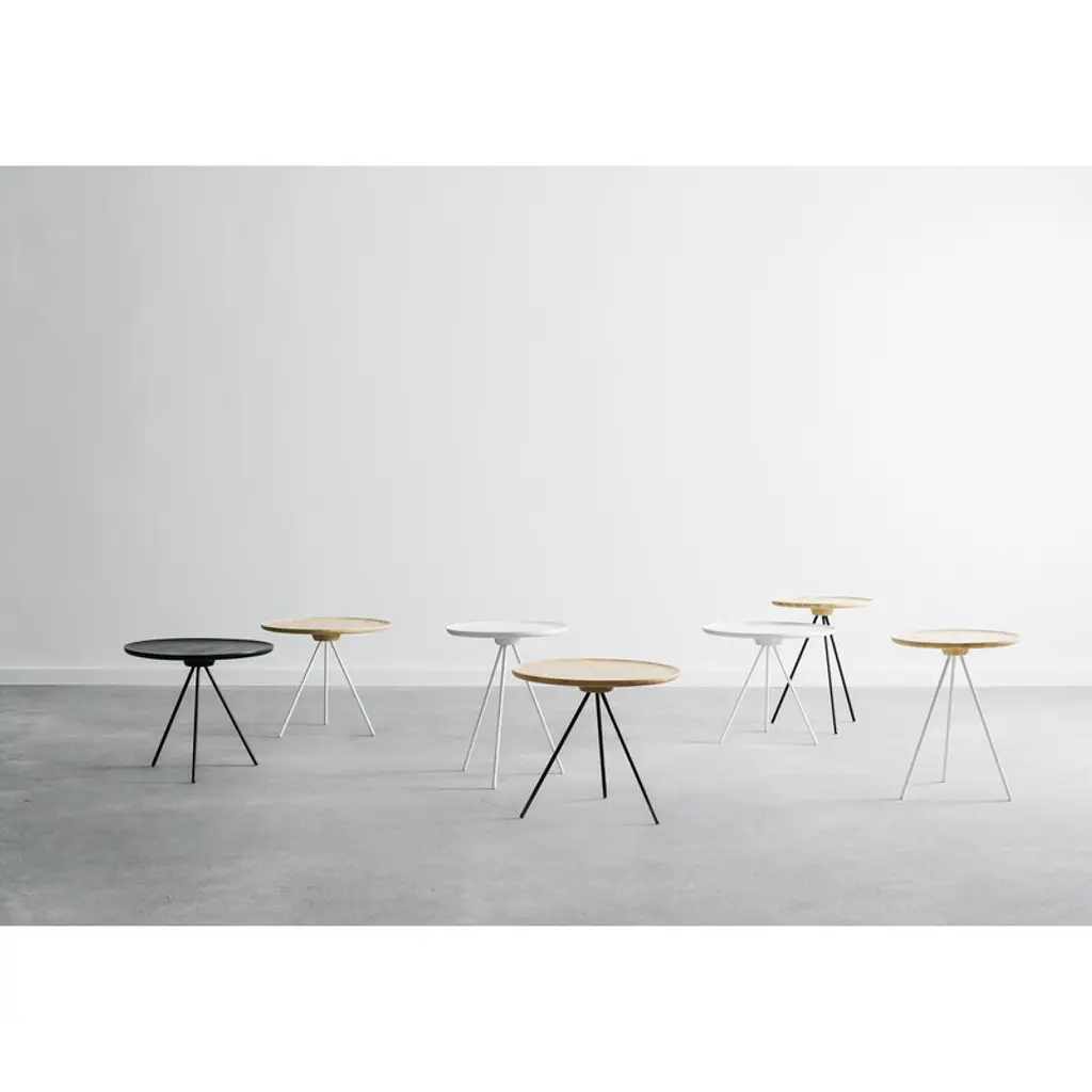 The Key coffee table by Hem consists of a solid ash top resting on slender metal legs. The most stunning feature of the design is the natural grain adorning the tabletop, creating fascinating patterns on the wooden surface. The tripod leg structure gives the table a light, contemporary appearance without compromising on sturdiness and functionality. The Key coffee table is a timeless addition to any interior whether alone or in a cluster of several tables, placed next to an armchair or in the center of a sofa set, for example. Delivered flat-packed, the table is easy to assemble without the need for any tools: the tabletop can simply be screwed onto the tripod legs. The table is designed by design studio GamFratesi.