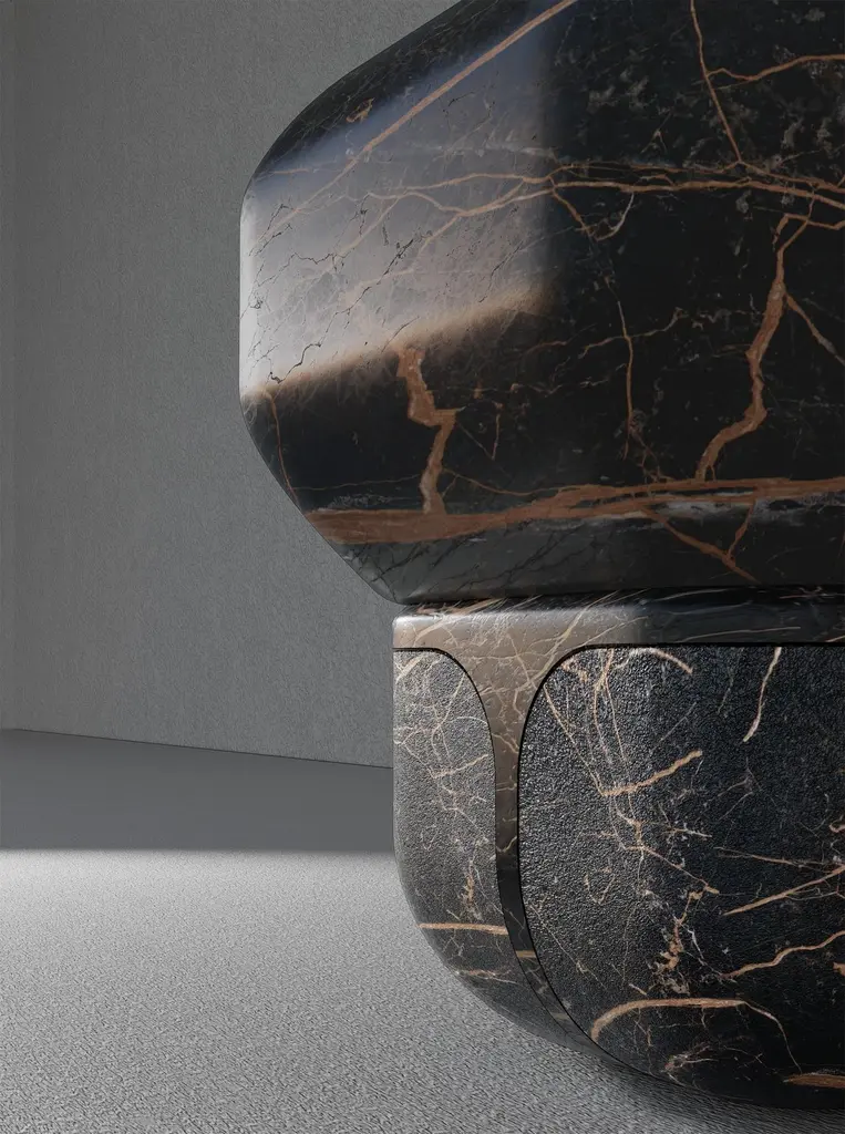 Kheper K01 coffee table by MonogrammaDimensions: D 39 x W 45 x H 45 cmMaterials: Port Saint Laurent (honed and sandblasted).MonogrammaWhat really brings together is not so much our professional skills, but rather the empathy and emotion that flow among us. We have always wanted to create a flexible and multidisciplinary environment which we can then adapt according to the project we are working on.We firmly believe in the professionalism of each one of us which gives us the freedom to face each challenge either individually or as a group. We are convinced that the experience of one can serve as experience for all of us.We are a team that can modify and organize itself according to the needs of our clients and we find the added value in our projects in order to offer an exclusive experience.