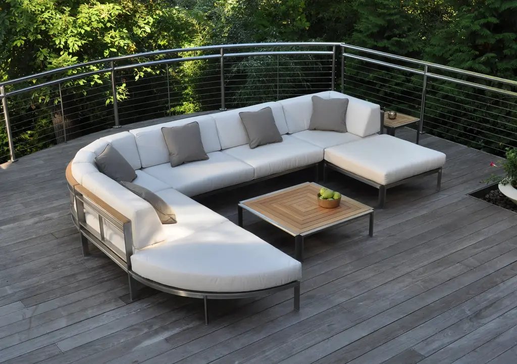 The modern Tivoli Collection is beautifully crafted from high grade stainless steel and premium teak. The pieces are generously scaled for exceptional comfort. Please Note: Although stainless steel is usually resistant to corrosion, the surface is susceptible to cosmetic discoloration due to the effects of salt water, salt air, chlorine from pool water, and air-borne chemicals. We do not recommend using this furniture if you are within 10 miles of the ocean. Please Note: Kingsley Bate fabrics, canopies, cushions, covers, special order sling colors, and special order finishes are considered customized and may have longer lead times. These items cannot be cancelled, returned, or exchanged.