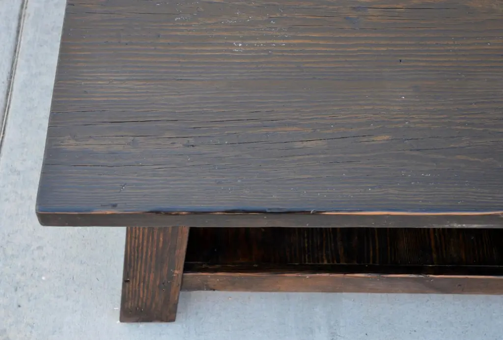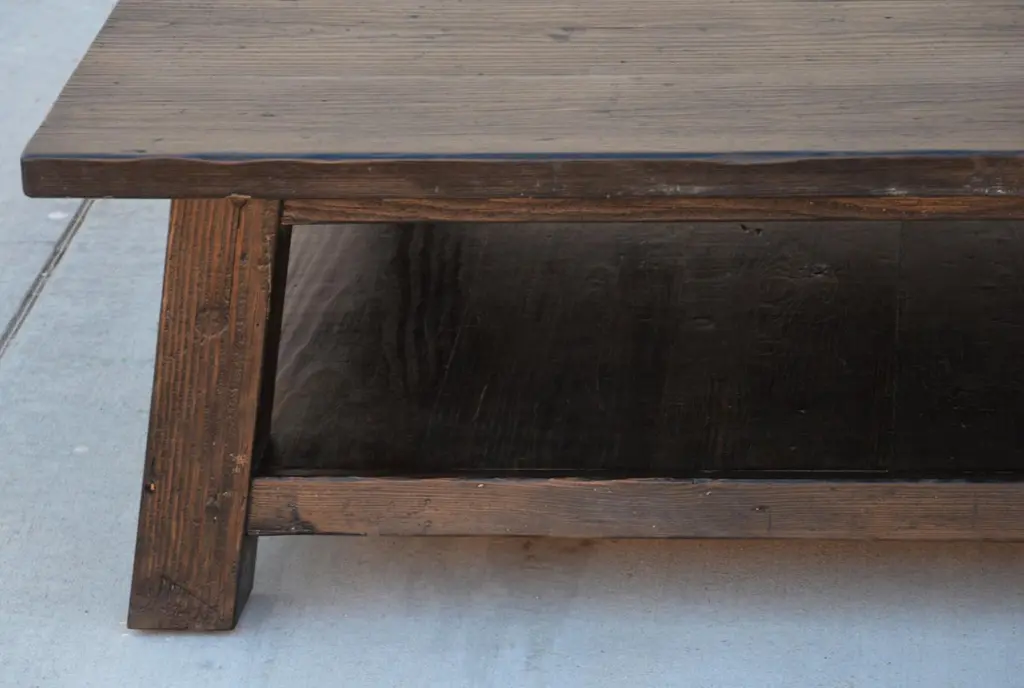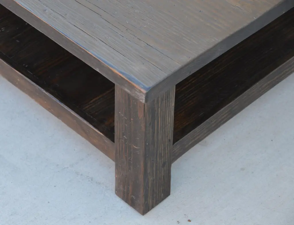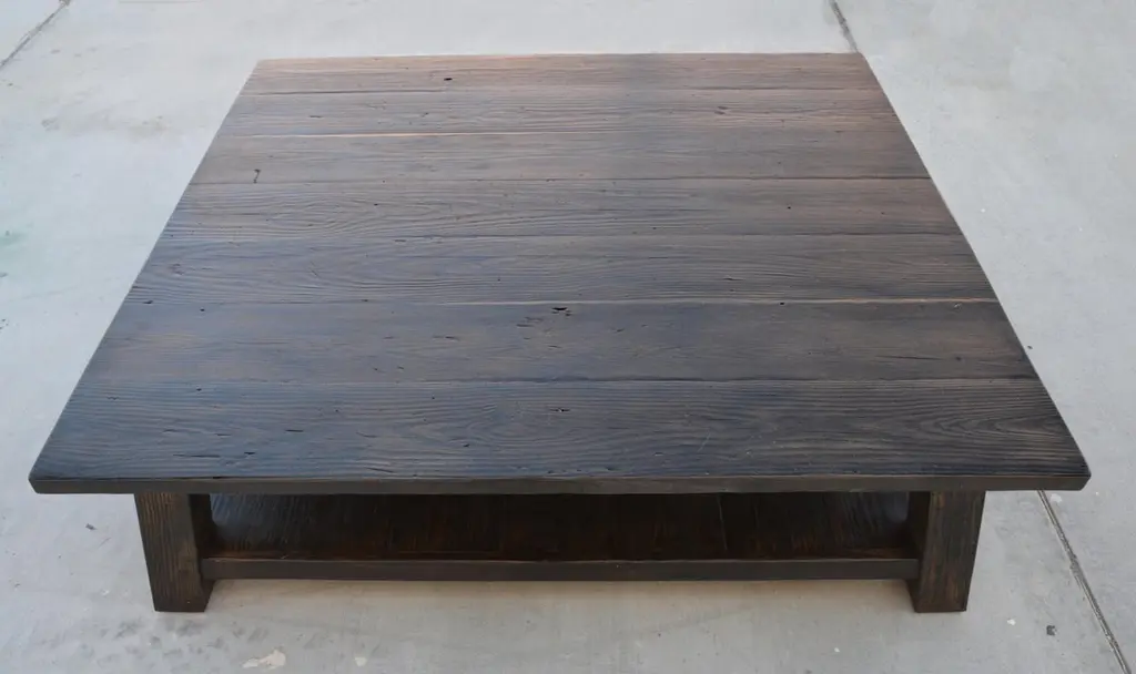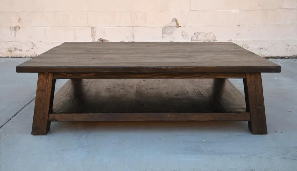 This coffee table is seen here in 50"x 56" x 17" however it can be made in any size. It has slightly splayed legs and a shelf connecting each of the four legs. Each table is bench-made in our Los Angeles workshop using traditional carpentry techniques, no nails or metal fasteners of any kind, just mortise and tenon construction reinforced with handcut wooden dowels. Because each table is made to order you can influence all aspects of design, including size, wood species and finish.