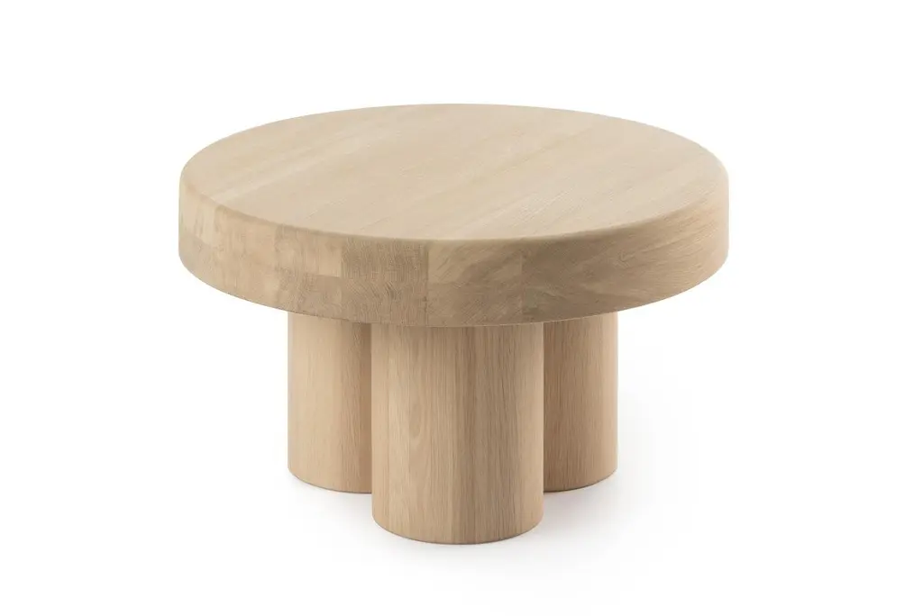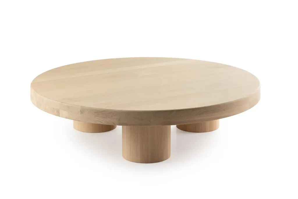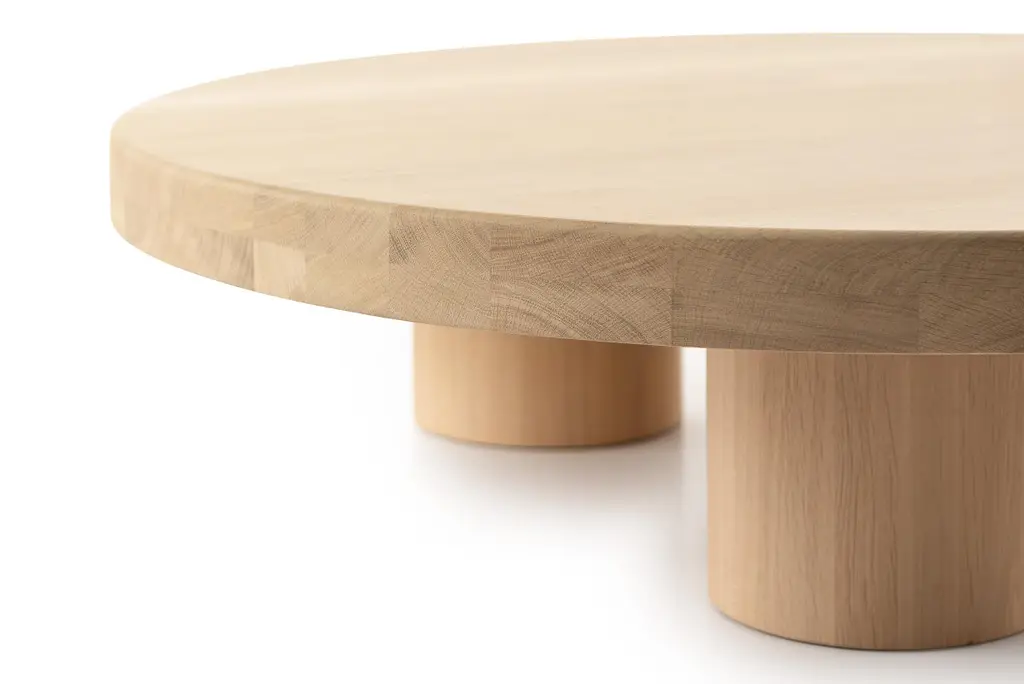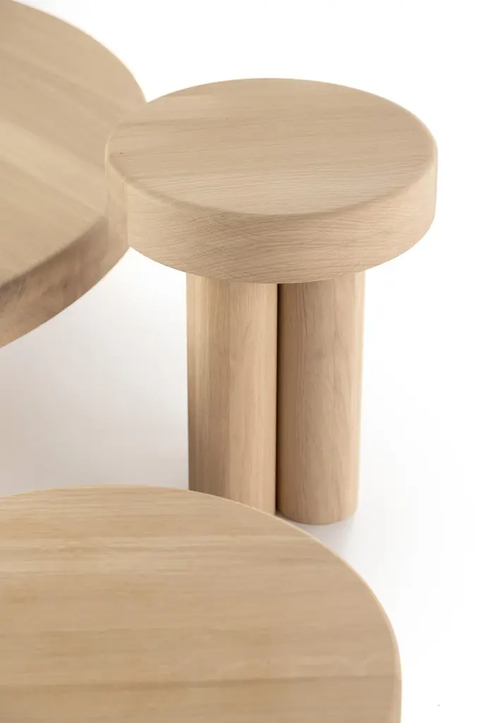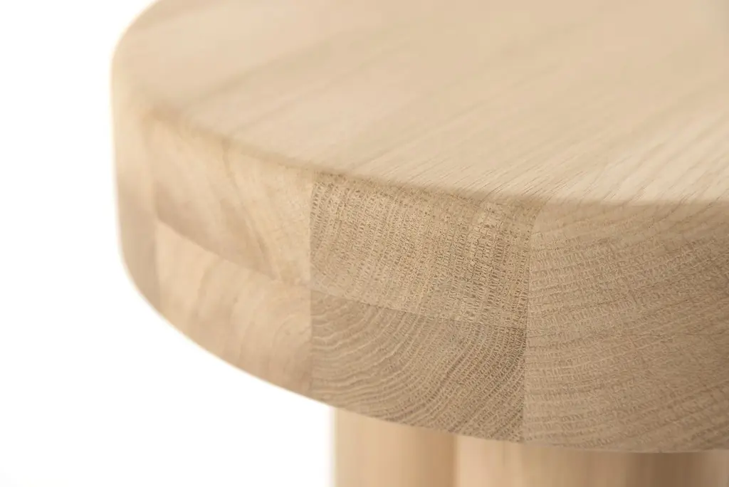 A new interpretation on brutal design. These round coffee tables have been made to last forever. It will stand for 100 years and more. These round coffee tables in 100% solid French oak have 3 central feet also made of solid French oak. The legs are made on a traditional wood lathe. The table top has a thickness of 7cm where the edges have been thickened from 3cm to 7cm solid oak. These tables are available in numerous sizes from Ø35 up to Ø 250cm and in different heights and finishes. Make a combination you like! Beautiful in the living room of your house but also in the central hall of your office, hotel or in a public building. Work with quality, live with quality!