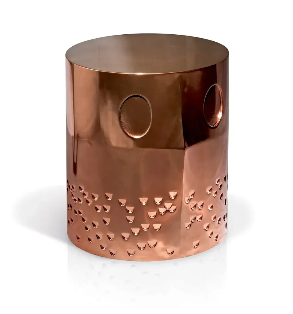 Knatt is a steel sculpture-table, an eclectic piece that can fit into any style and environment. A sculpted cylinder. As unusual as it is harmonious.Structure in glazed ceramic with optional metal treatment.