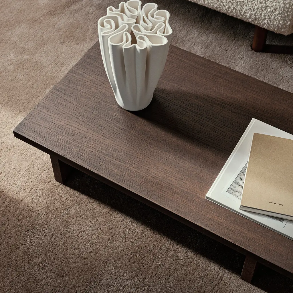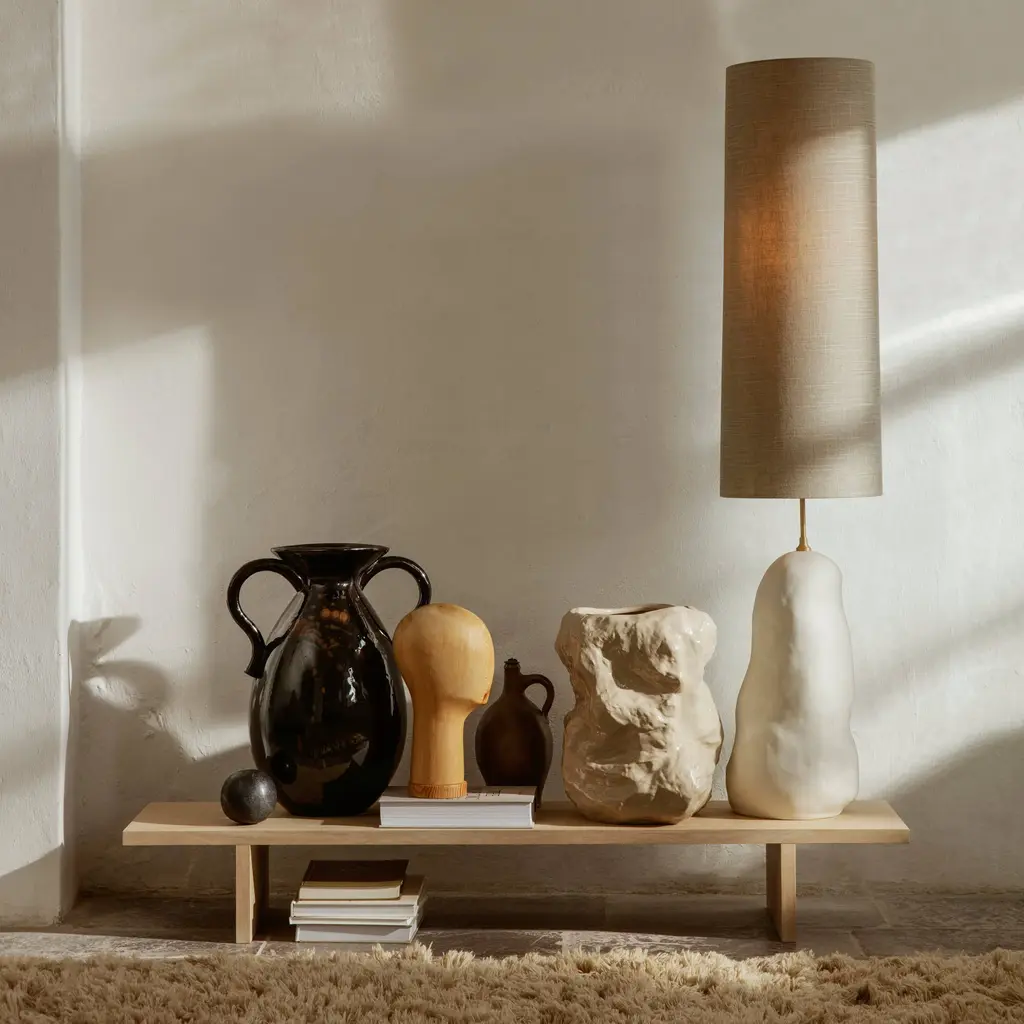 Ferm Living leans into the serenity of Japanese-style rooms and their low furnishings with a similarly proportioned display table. Crafted in FSC mix-certified oak veneer, Kona is elevated just above ground and has a straightforward uncluttered look. The warm natural wood finish and versatile character make it perfect for displaying plants, books and perhaps a lamp or it can serve as a coffee table for lounging on cushions or sitting on the floor.