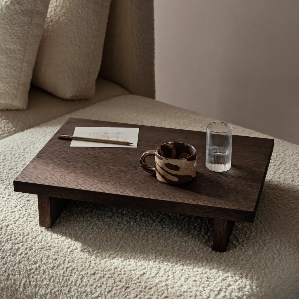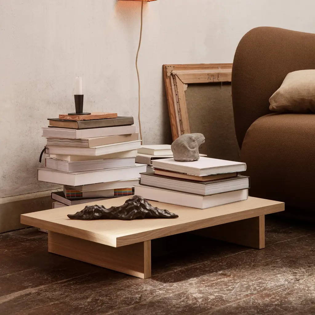 Inspired by the Japanese tradition of sitting and sleeping on the floor, Ferm Living’s low table is elevated just above the ground to the perfect height. Embrace the lifestyle and Kona serves as a coffee table when lounging on cushions or on the floor. With a lacquer finish on natural oak veneer, It also makes for an attractive display for plants, books and favorite objects.