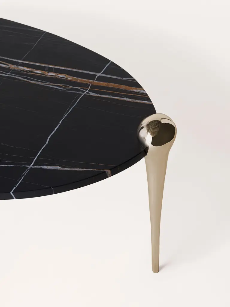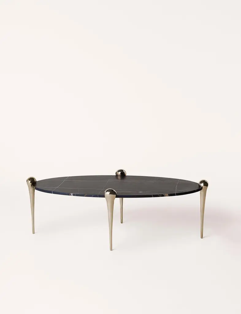 Konekt Petra Coffee Table With Sahara Noir Marble And Cast Bronze Legs