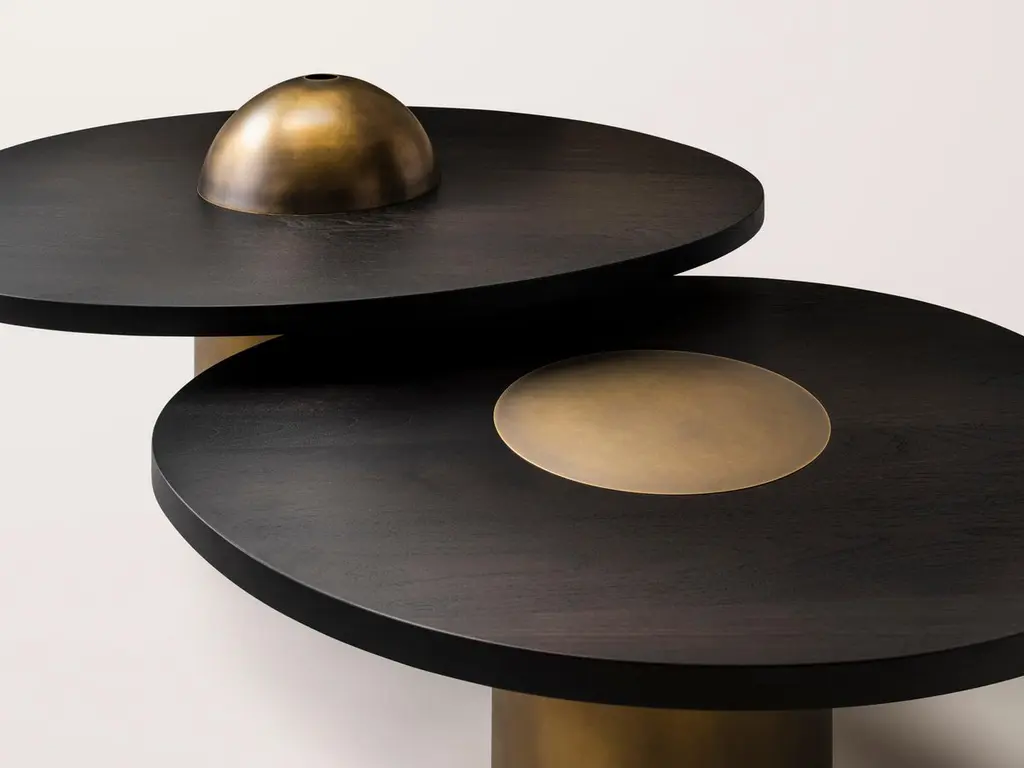 Konekt Silo Coffee Table Small - Ebonized Walnut And Antique Brass