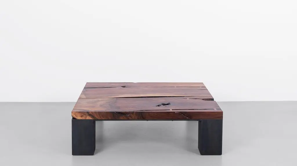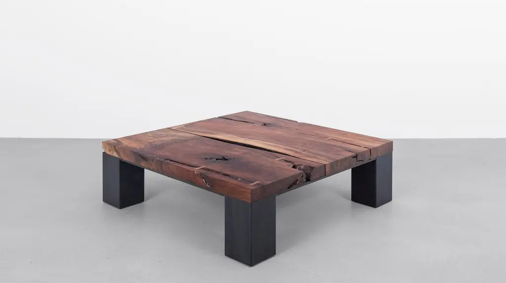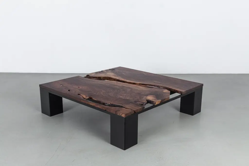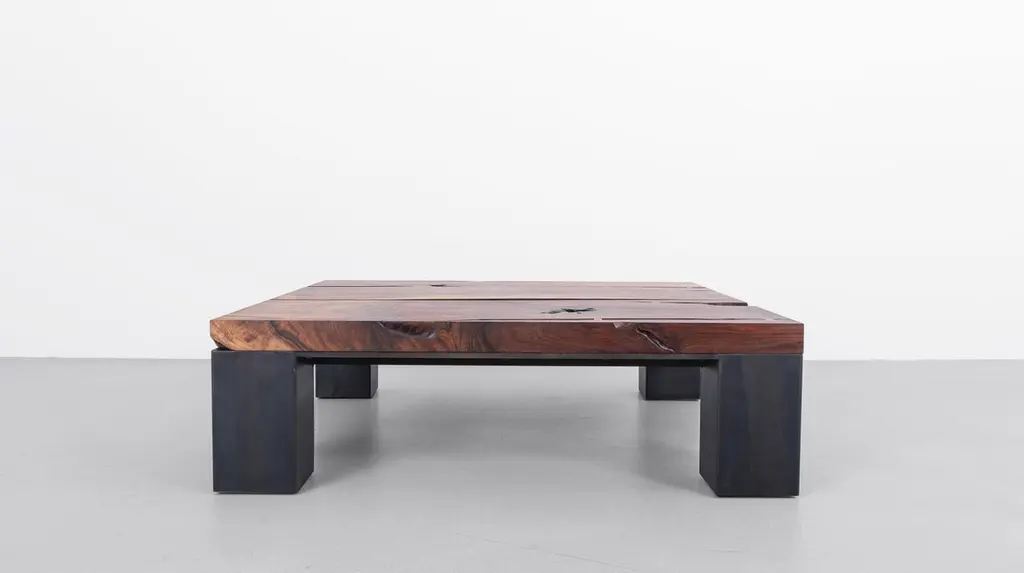 Kong Coffee Table 52"x52" In Solid Walnut And Steel Base