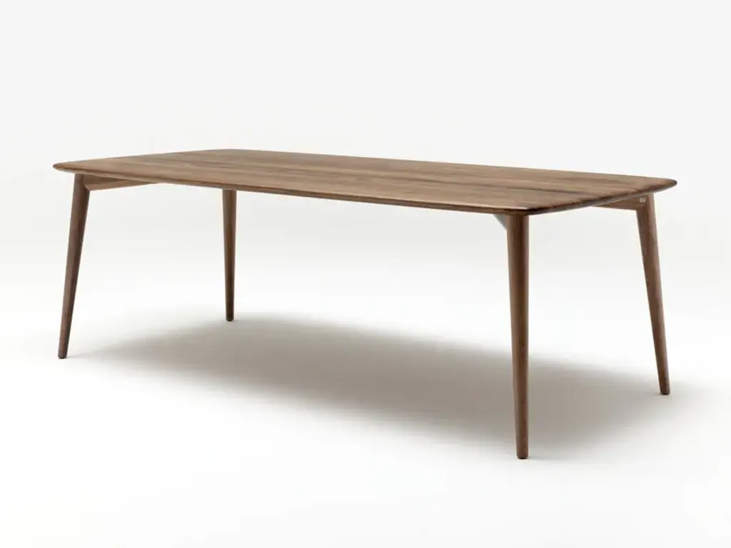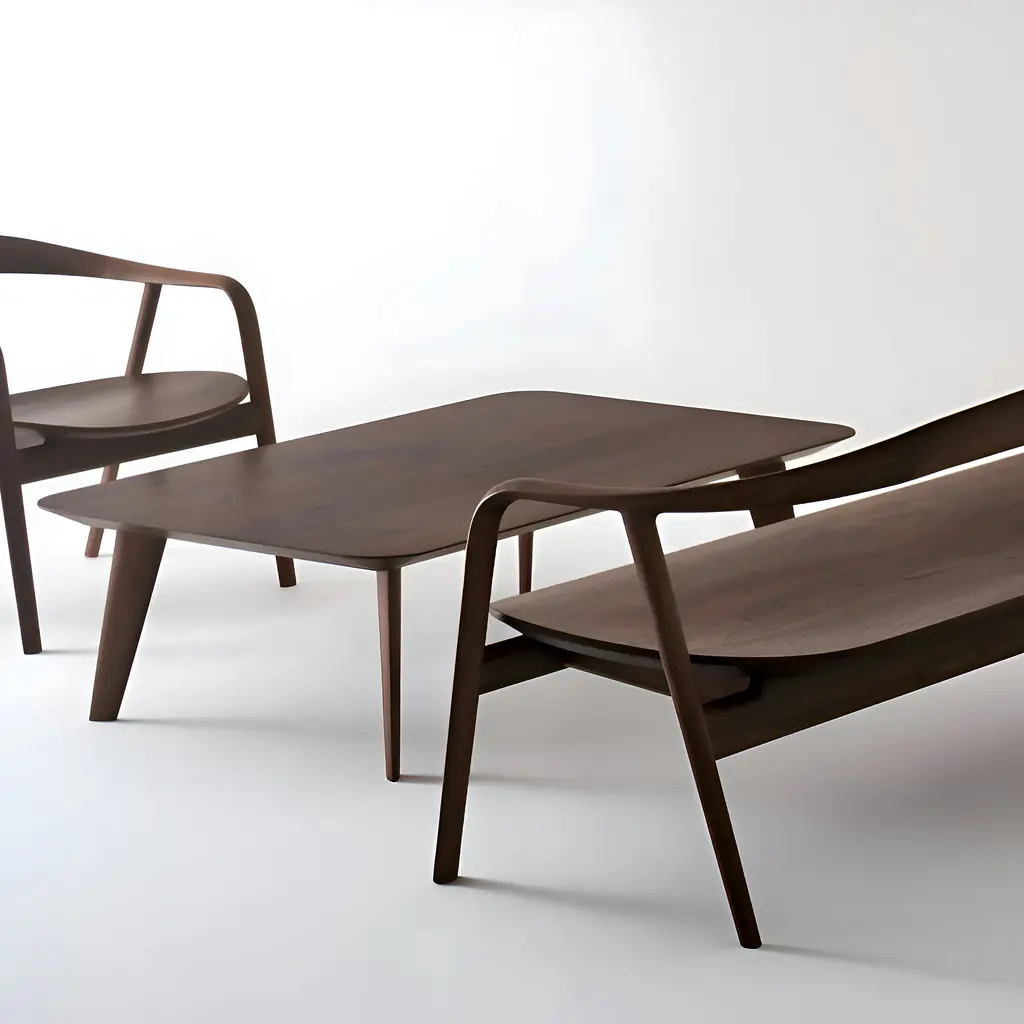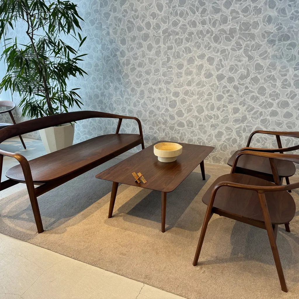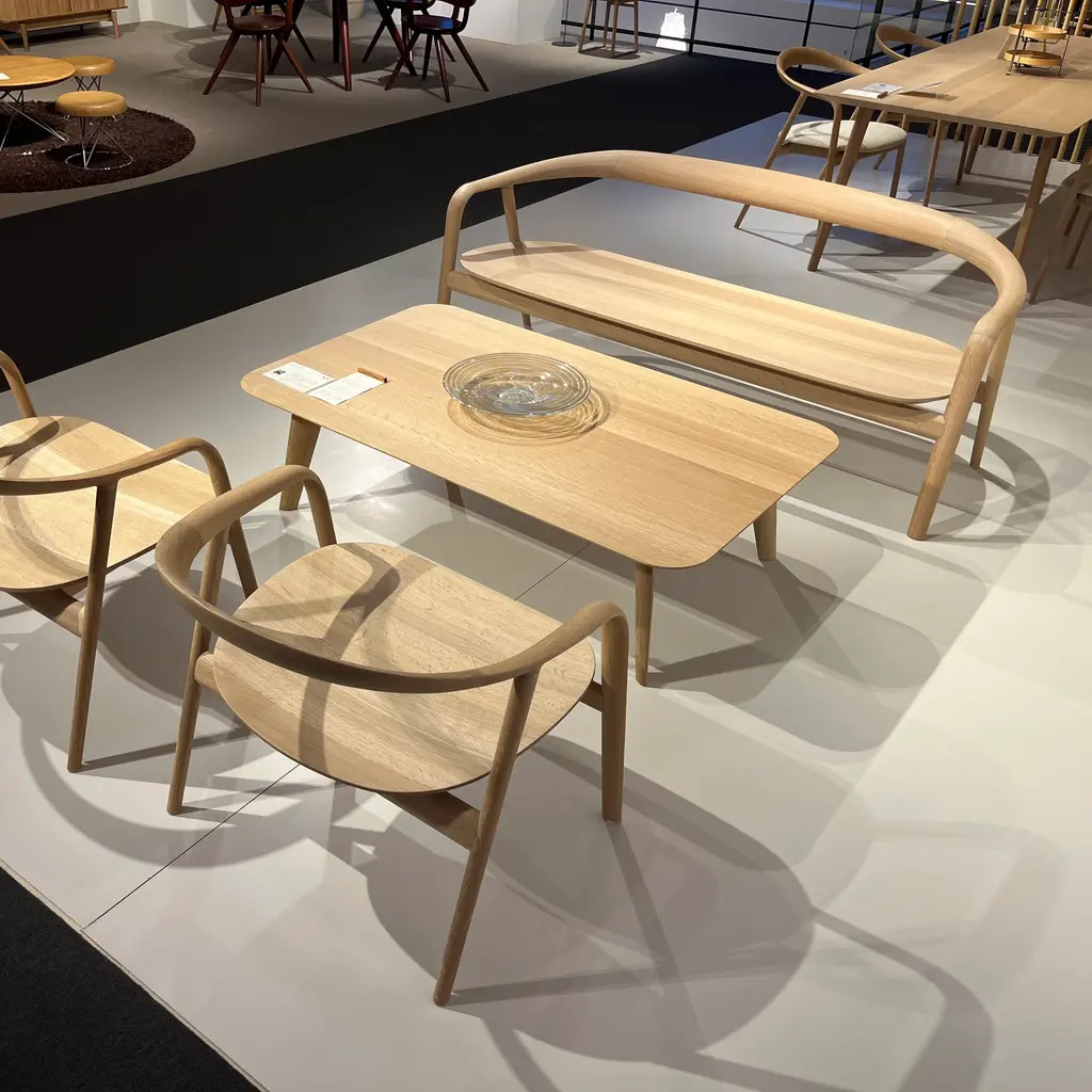 The Kumahida Coffee Table, designed by renowned architect Kengo Kuma to mark Hida Sangyo's 100th anniversary, brings together softness and lightness. Crafted from solid walnut or white oak, the tabletop edges are carefully carved to a thin 4mm thickness, giving it a delicate, airy look. The legs, made from spindle wood sections, are subtly tilted to suggest the movement of a forest creature. This organic design highlights Hida Sangyo's expertise in bentwood and wood carving techniques, reflecting a deep appreciation for the natural beauty of wood and creating pieces that connect with human sensibilities.