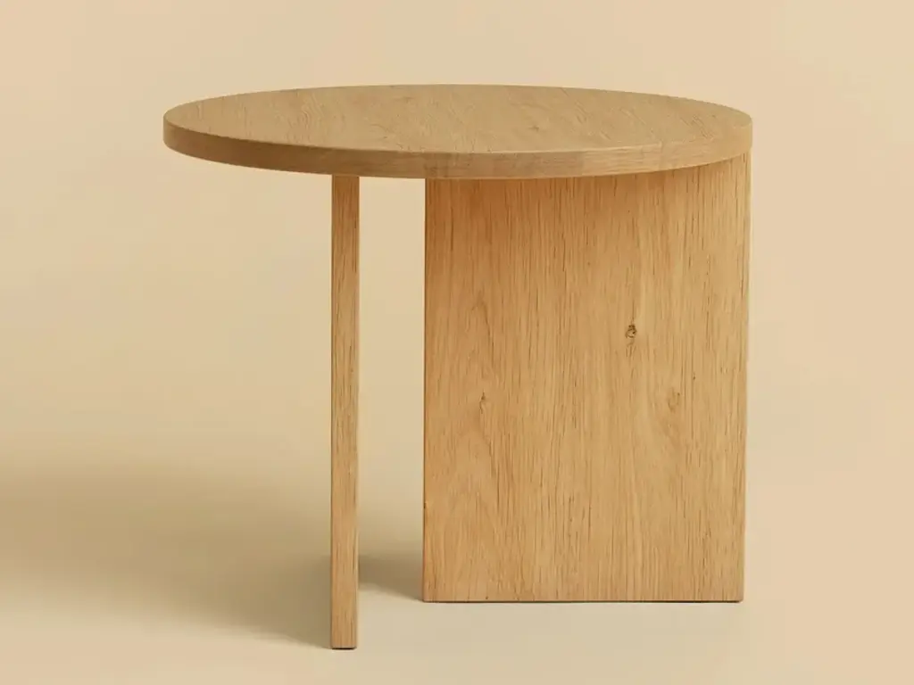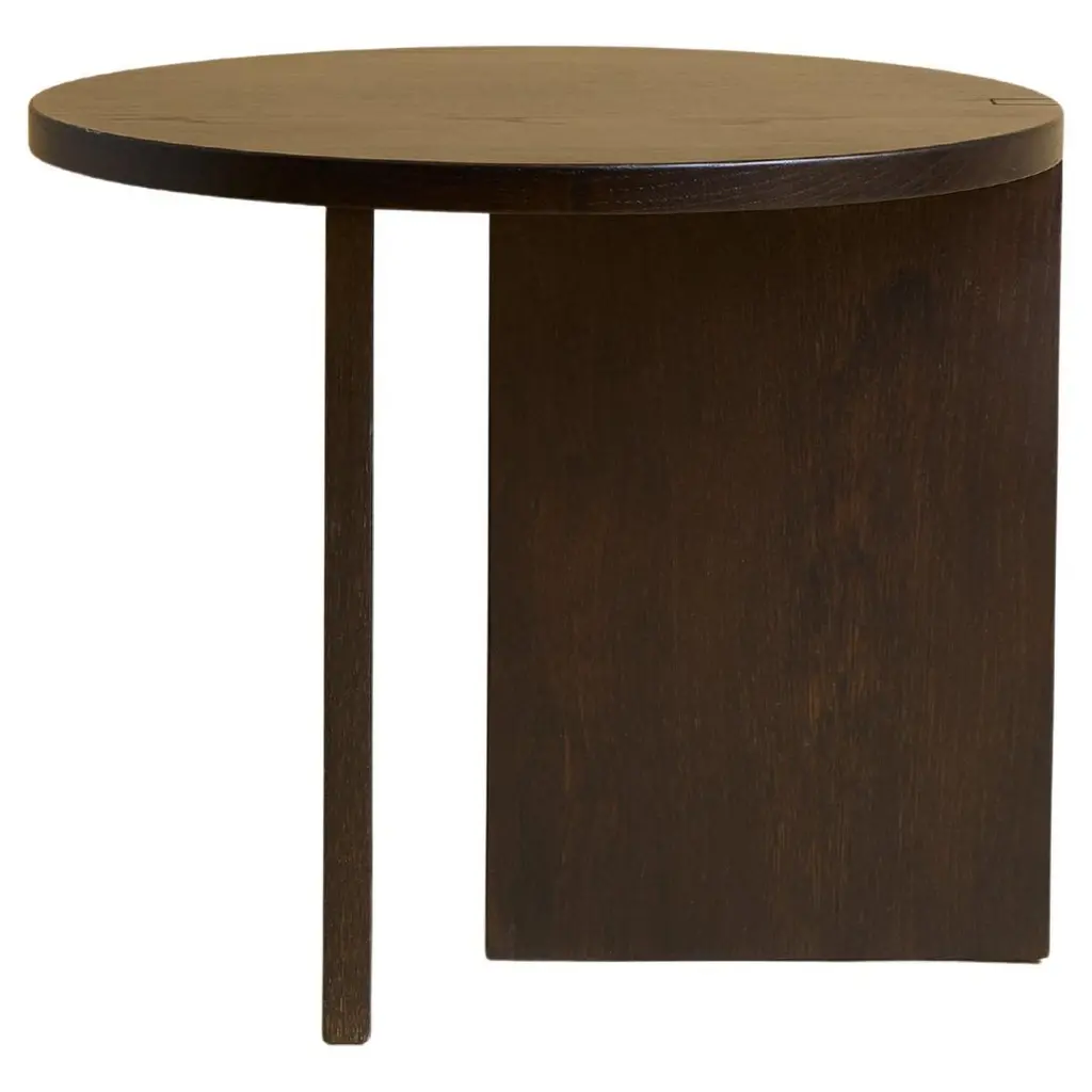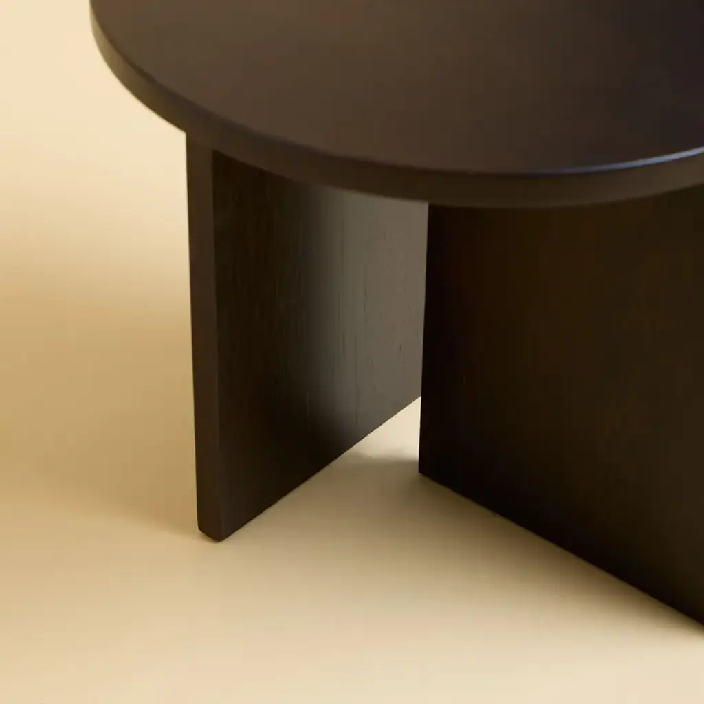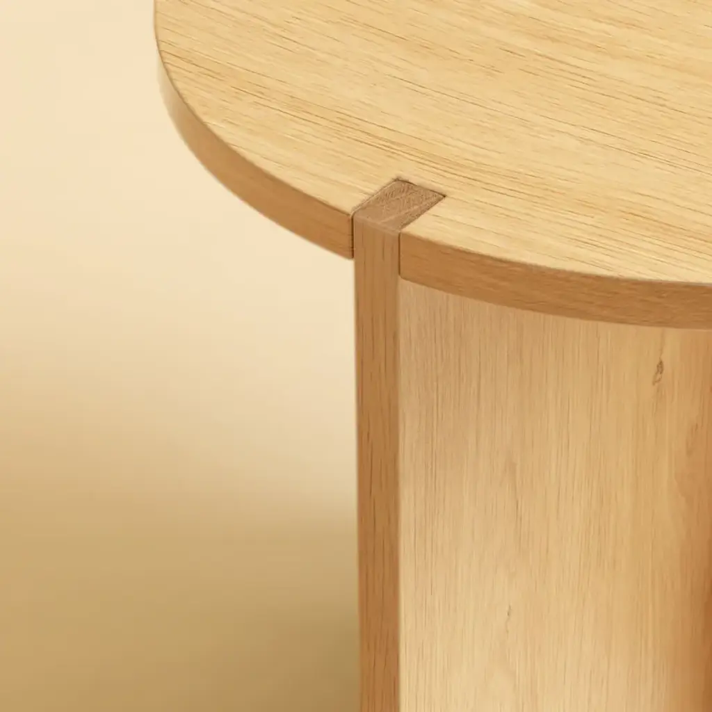 Kume is a coffee table made entirely of solid oak wood. The top is circular and has a diameter of 45cm, the legs are made from two glued solid wood boards in which one part is interlocked on the top. Available in oak and smoked oak finishes.