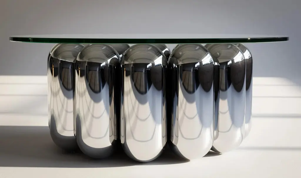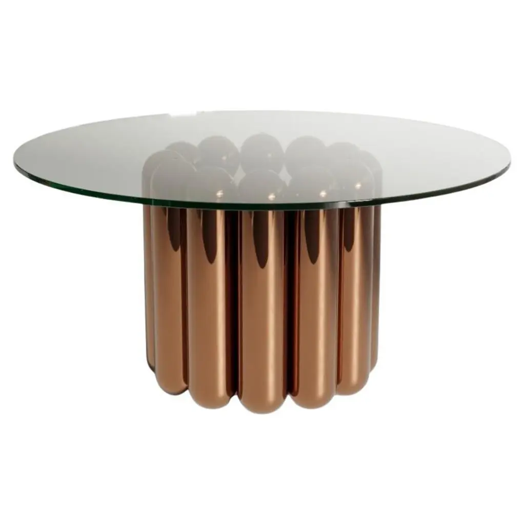 Kupoli Coffee Table 12 by Cameron Design HouseDimensions: D 98.3 x H 40 cm.Materials: Steel, glass.Available in other dimensions.Available in paint or pigmented chrome finishes. Please contact us.The Kupoli Coffee Table is a distinctive piece from the Kupoli Collection, Cameron Design House’s debut collection of statement sculptural furniture. Designed to captivate, the Kupoli Collection seamlessly merges artistry and craftsmanship with functionality. Each piece features a mesmerising body of domed steel tubes, finished with a glass top.All our lamps can be wired according to each country. If sold to the USA it will be wired for the USA for instance.Cameron Design House is an award-winning British studio specializing in bespoke lighting and furniture. Founded by Ian Cameron in 2014, the London-based brand is renowned for its contemporary statement designs and refined craftsmanship. Each piece is designed in our London studio and handcrafted in our Hertfordshire workshop."In our hands, we are metalworkers; with our minds, we are designers; and with our hearts, we are artists."— Ian Cameron (Founder)Now globally recognized, Cameron Design House’s expansion has been driven by Managing Director Simeon Chilvers. Coming from a background in architecture and design, he brings a wealth of knowledge and expertise that propels the brand’s development forward.Cameron Design House is defined by quality, precision, and a seamless client experience—from design to delivery. Our custom chandeliers and furniture are meticulously engineered and tailored to each client’s specifications, offering bespoke sizing, configurations, and finishes. From our collection to fully bespoke pieces, your vision is brought to life through our expertise.