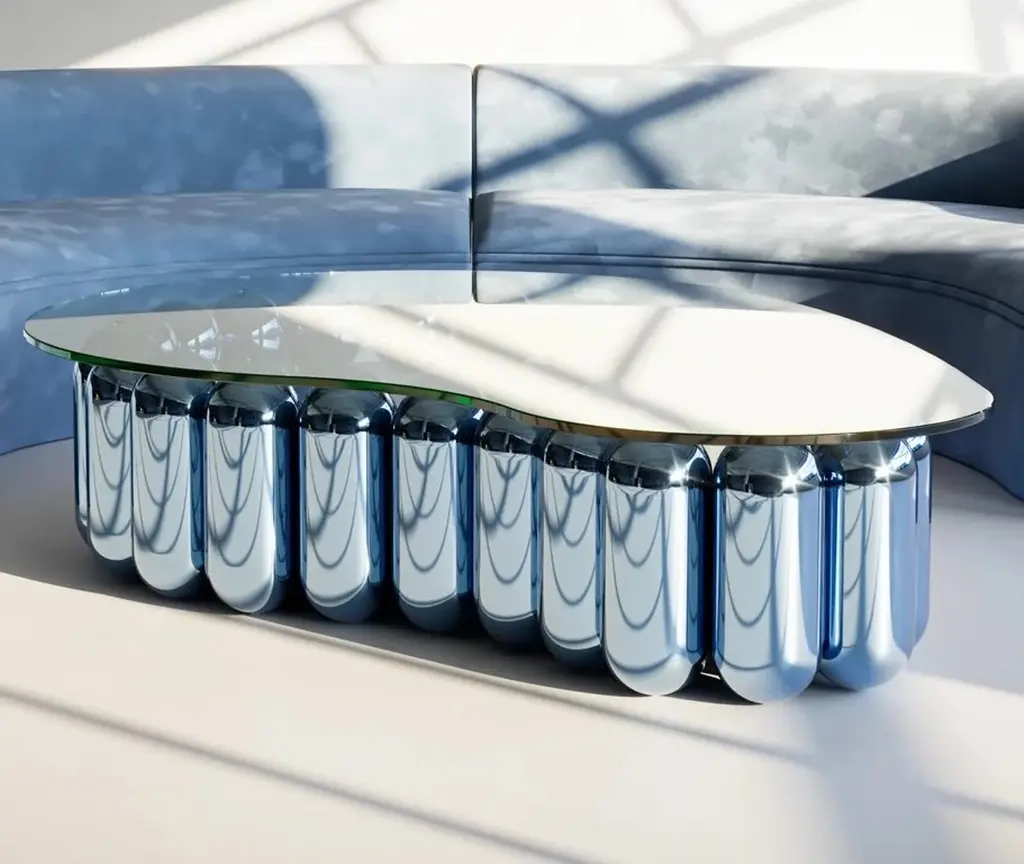 Kupoli Coffee Table 26 by Cameron Design HouseDimensions: D 130 x W 189.3 x H 40 cm.Materials: Steel, glass.Available in other dimensions.Available in paint or pigmented chrome finishes. Please contact us.The Kupoli Coffee Table is a distinctive piece from the Kupoli Collection, Cameron Design House’s debut collection of statement sculptural furniture. Designed to captivate, the Kupoli Collection seamlessly merges artistry and craftsmanship with functionality. Each piece features a mesmerising body of domed steel tubes, finished with a glass top.All our lamps can be wired according to each country. If sold to the USA it will be wired for the USA for instance.Cameron Design House is an award-winning British studio specializing in bespoke lighting and furniture. Founded by Ian Cameron in 2014, the London-based brand is renowned for its contemporary statement designs and refined craftsmanship. Each piece is designed in our London studio and handcrafted in our Hertfordshire workshop."In our hands, we are metalworkers; with our minds, we are designers; and with our hearts, we are artists."— Ian Cameron (Founder)Now globally recognized, Cameron Design House’s expansion has been driven by Managing Director Simeon Chilvers. Coming from a background in architecture and design, he brings a wealth of knowledge and expertise that propels the brand’s development forward.Cameron Design House is defined by quality, precision, and a seamless client experience—from design to delivery. Our custom chandeliers and furniture are meticulously engineered and tailored to each client’s specifications, offering bespoke sizing, configurations, and finishes. From our collection to fully bespoke pieces, your vision is brought to life through our expertise.