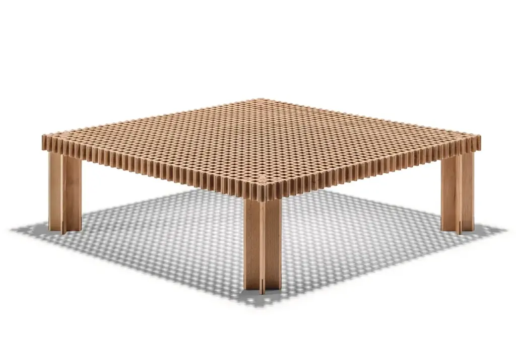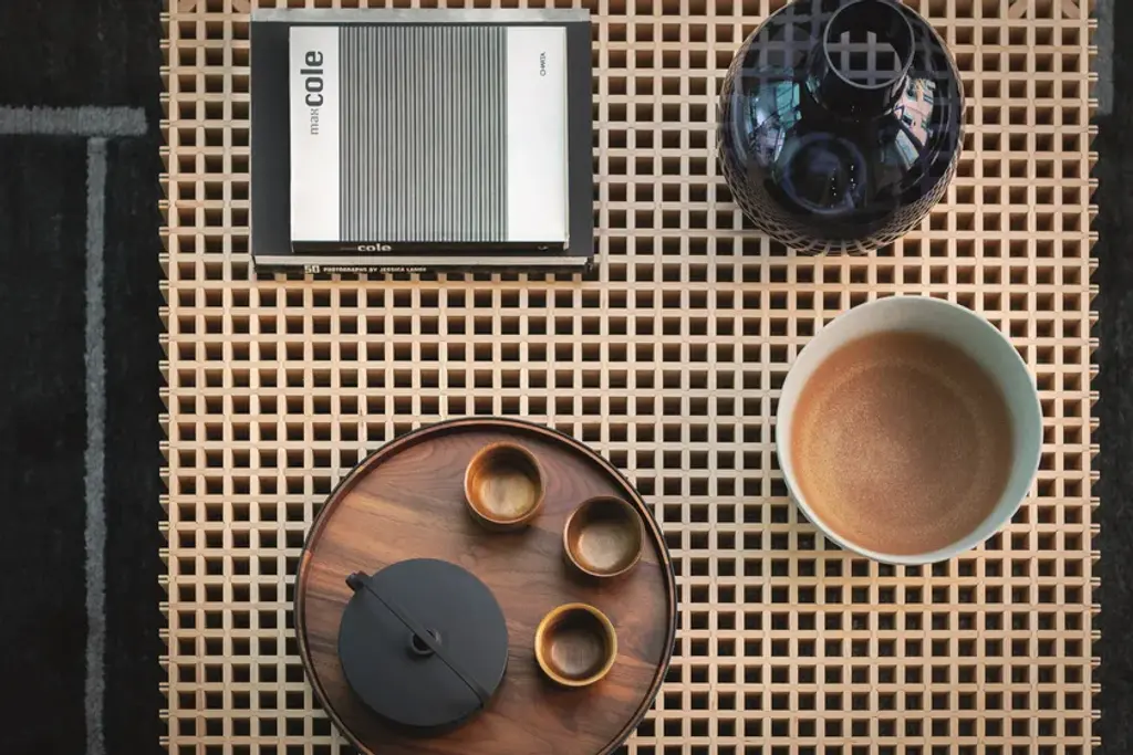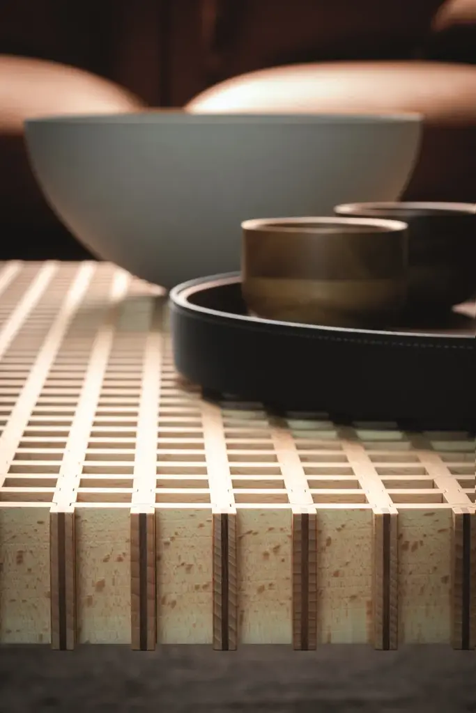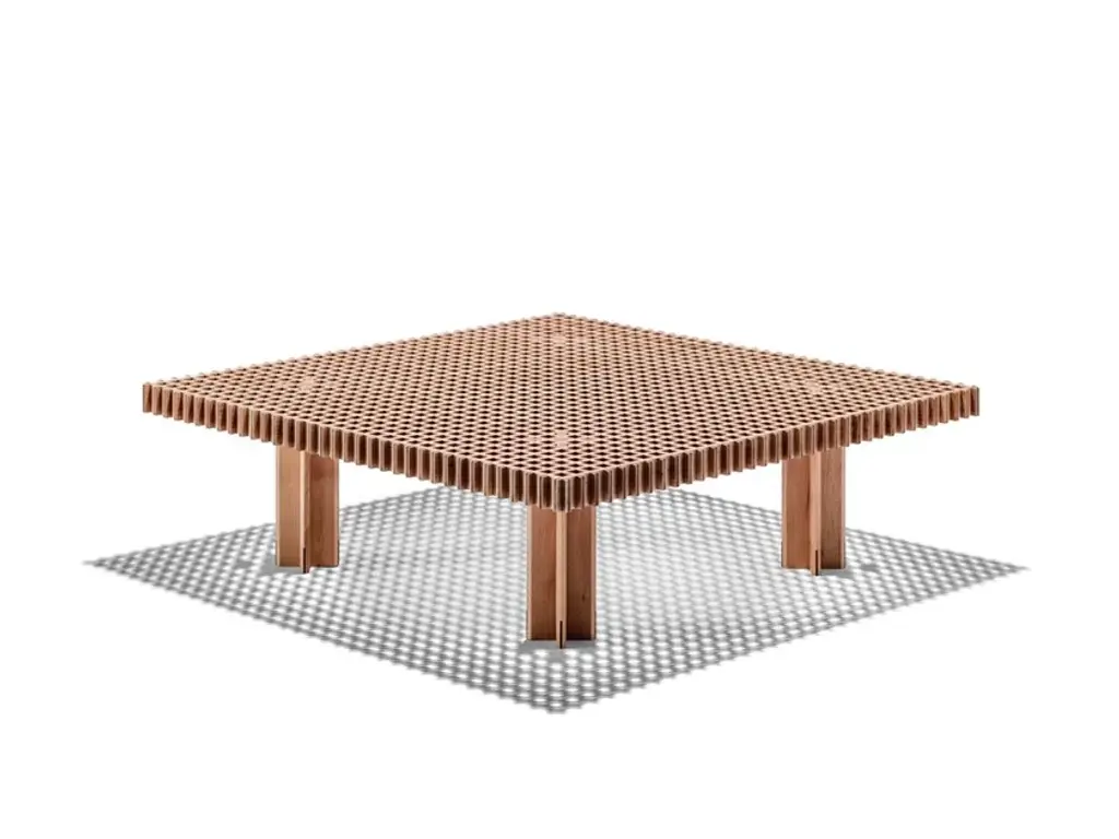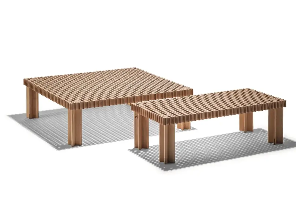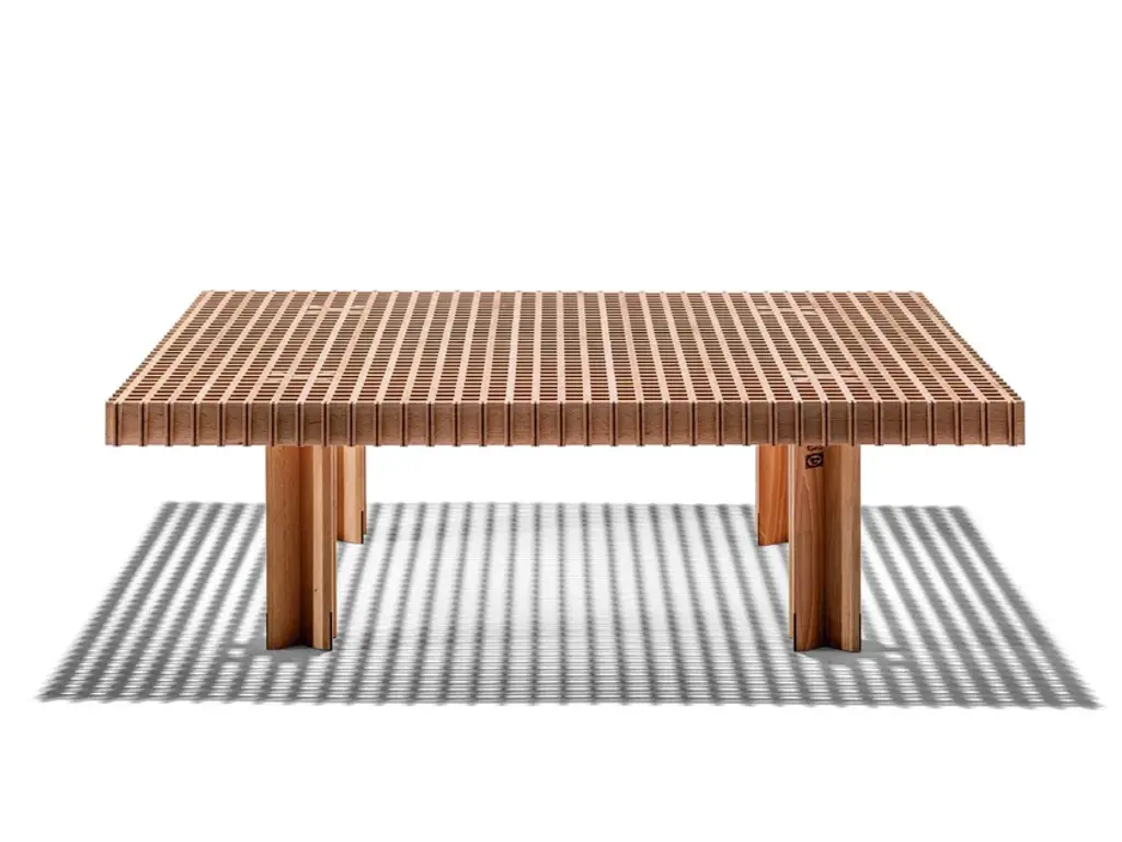 Understated and refined, the Kyoto table by architect and designer Gianfranco Frattini is the perfect blend of design vision and master craftsmanship. In the early 70s, during a trip to Japan to study the work of the local craftsmen, Gianfranco Frattini visited the craft workshops of Kyoto together with expert carpenter Pierluigi Ghianda, who would become his friend and collaborator. Inspired by the processing techniques and aesthetics of these places, the designer came up with the idea for the joint that would form the basis of the table of the same name, production of which began in 1974. Kyoto immediately became synonymous with a concept of understatement which, as in the best Italian design tradition, combines a brilliant idea with impeccable execution. In the Kyoto table the construction concept becomes the object itself. The absence of decorative elements exalts the beauty of the raw material - the Canaletto walnut inserts have a precise strengthening function - requiring great technical ability and care as well as an in-depth knowledge of the material. Revisited by Poltrona Frau with complete respect for the original project, the Kyoto table reflects the skills and expertise of a new wave of artisans, heirs of the rich Italian wood crafting tradition, and stands alongside Albero and Turner as an example of high-end craftsmanship. The Kyoto table forms part of the permanent collection of the Design Museum at the Milan Triennale. The Kyoto table is available in the square 102 cm version with height of 32 cm, or in the 102x49 cm version, also 32 cm high. The surface and legs are in Extra light solid beech wood with solid Canaletto walnut inserts at the end of the boards that make up the top. The wooden boards are connected with 45° joints that form a square pattern. Slide-off counterpoise legs that can be positioned as desired. All surfaces are treated with a protective transparent varnish. The Poltrona Frau logo and the designer’s signature are laser engraved on one of the faces of the leg supports.