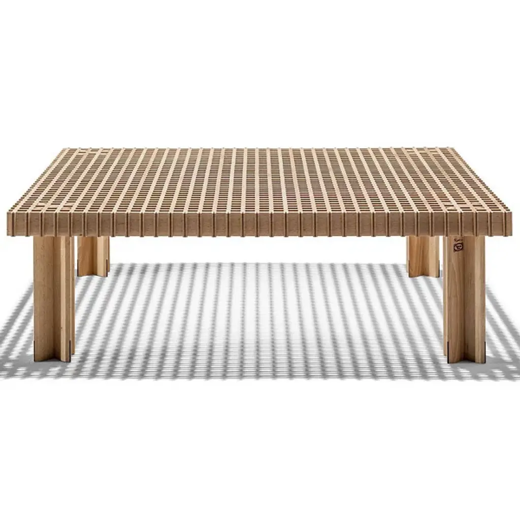 The Kyoto Square Coffee Table from Poltrona Frau combines geometry and clean design. This coffee table was designed by Gianfranco Frattini, who took a trip to Japan in the 1970s. During this trip, in collaboration with friend and artisan Pierluigi Ghianda, Frattini began experimenting with techniques for crafting furniture in understated ways. Kyoto is designed with this tenet of simplicity in mind. This table is most known for its wood composition and grid-style, square tabletop, which facilitates the formation of gorgeous silhouettes. The open framework of this table’s sturdy legs forms a finishing touch