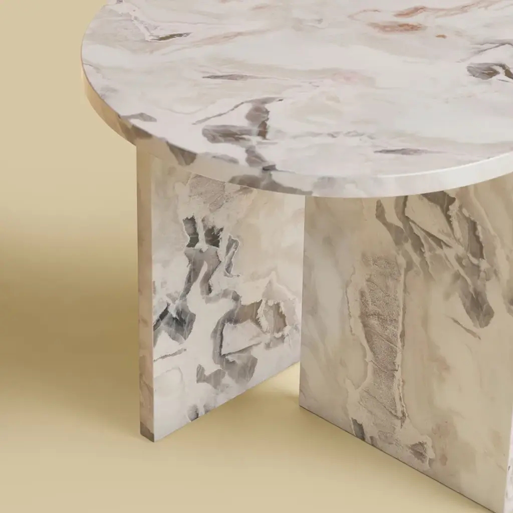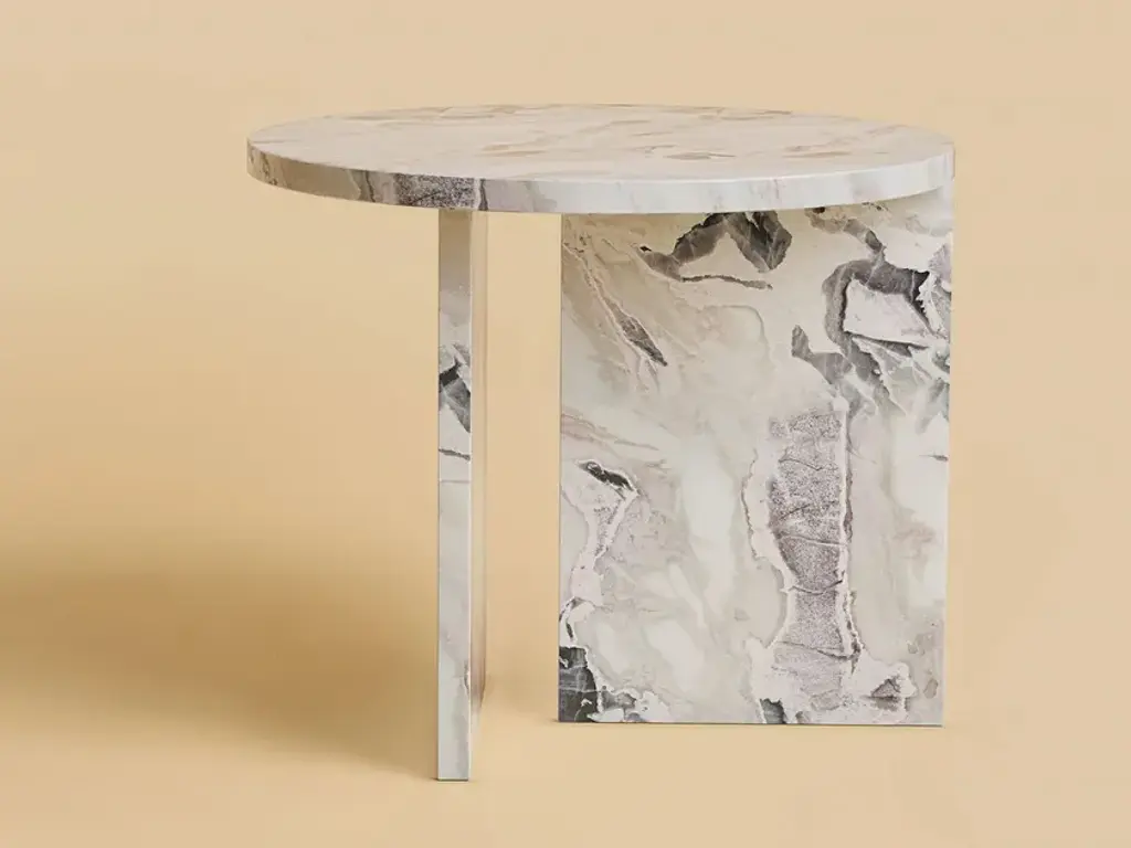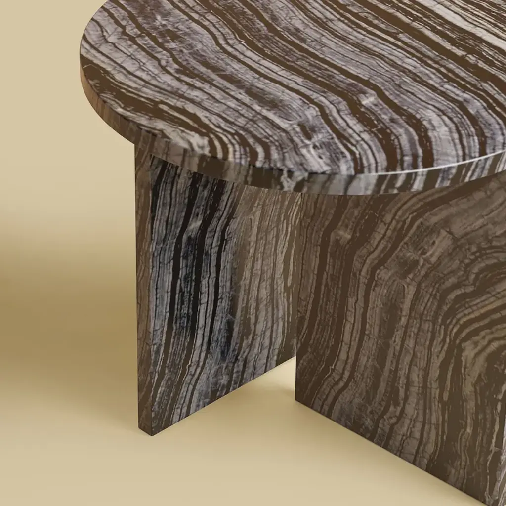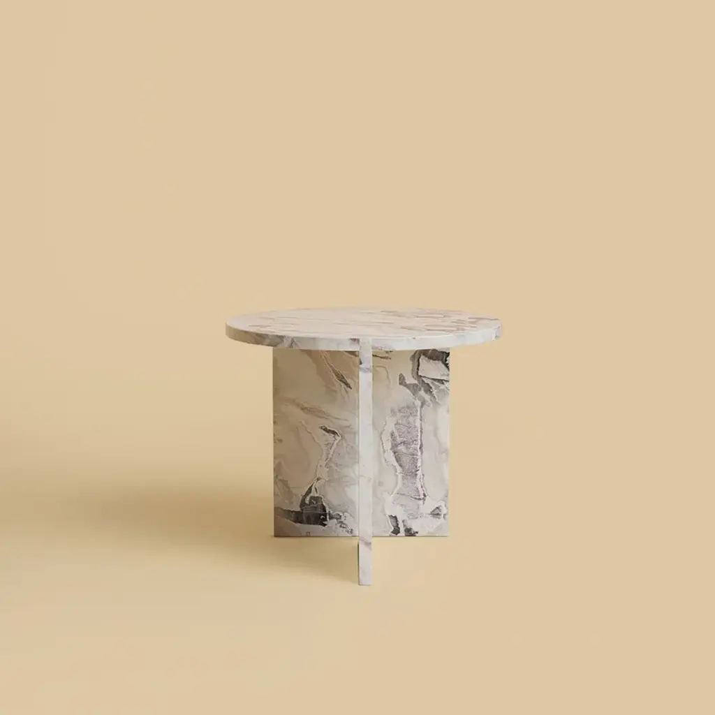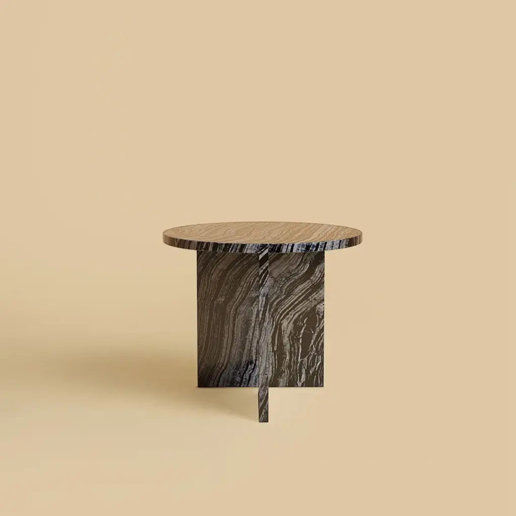 Kyushu is a side table made entirely of selected marble Dover White and Kenya Black. The top is circular and 45cm in diameter, the legs are made from two marble boards in which one part is interlocked on the top.The Kyushu side table is a striking piece that combines modern elegance with natural luxury. Crafted entirely from premium marble or travertine, this side table showcases a sleek, minimalist design that elevates any living space. The smooth top surface adds sophistication and durability, making it a perfect accent for living rooms, bedrooms, or entryways. With its sculptural form and timeless appeal, the Kyushu side table complements a variety of interior styles, from modern and contemporary to classic. Its solid construction ensures both stability and a touch of refined luxury, making it not only a functional piece but also a statement of style.