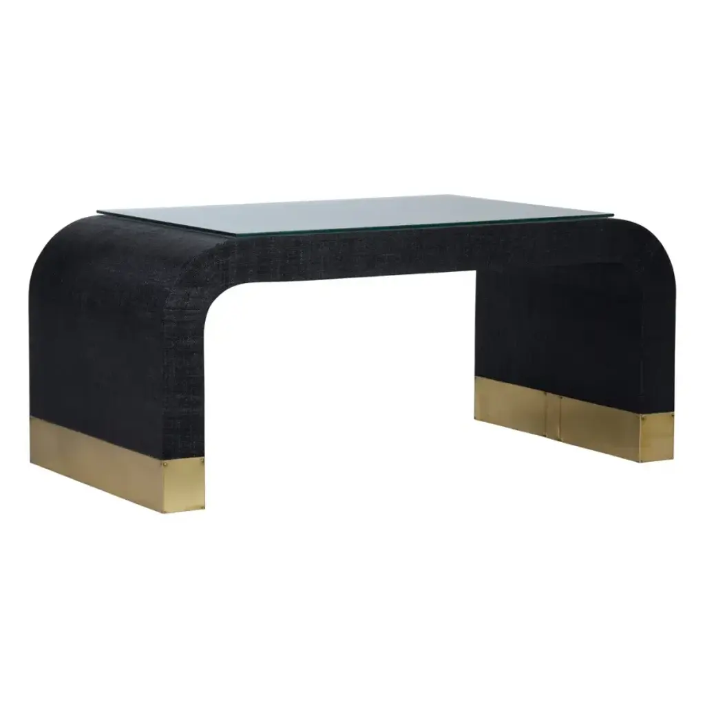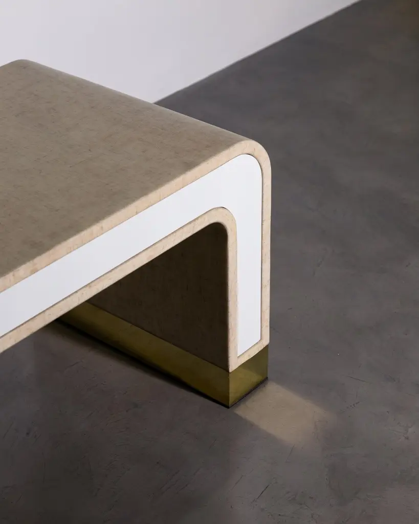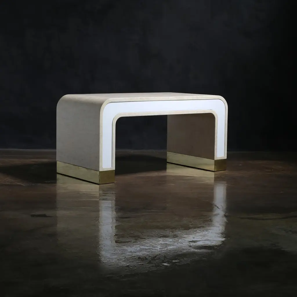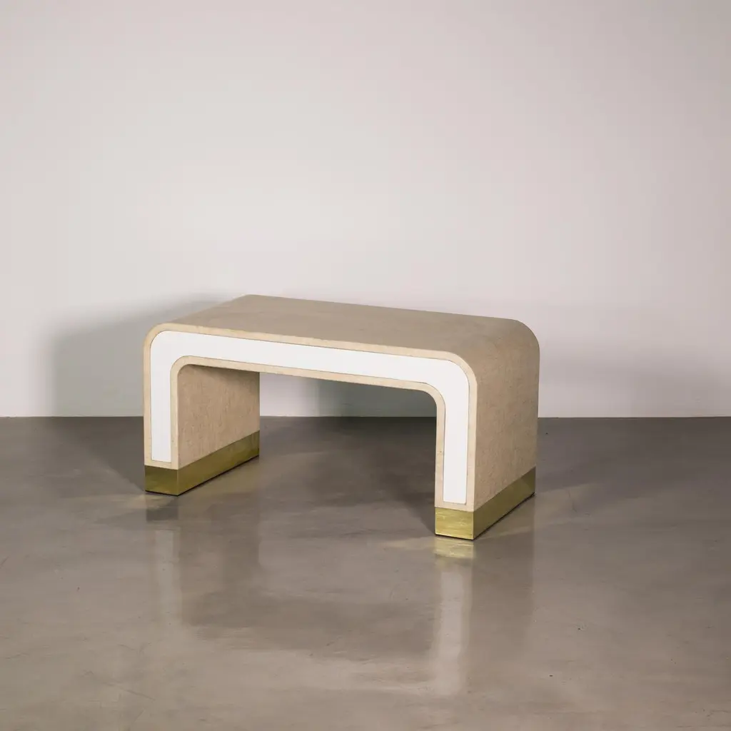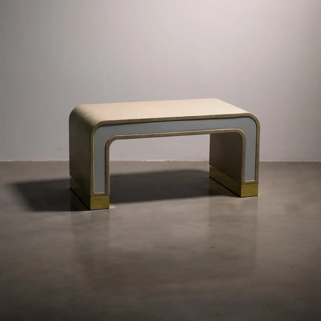 Lacquered Linen And Bronze Coffee Table By Costantini, Cascata 'In Stock'