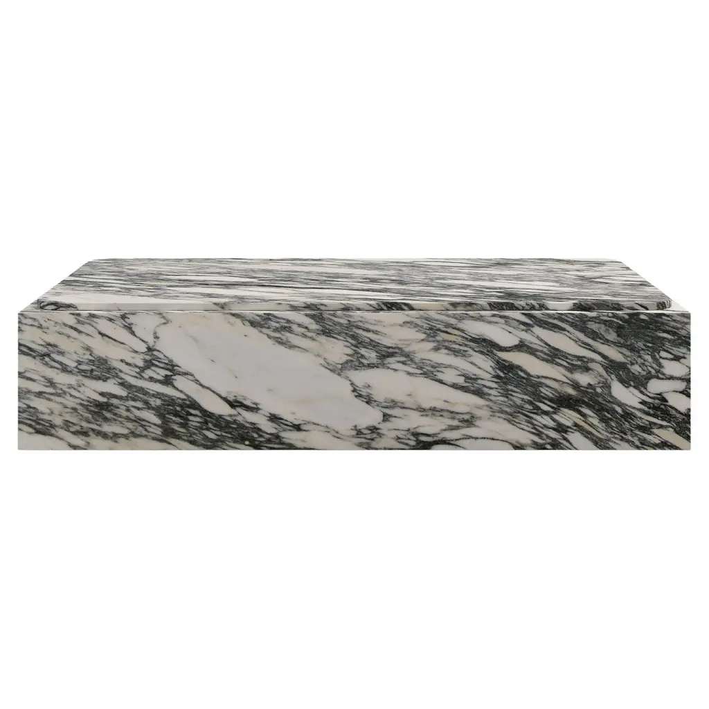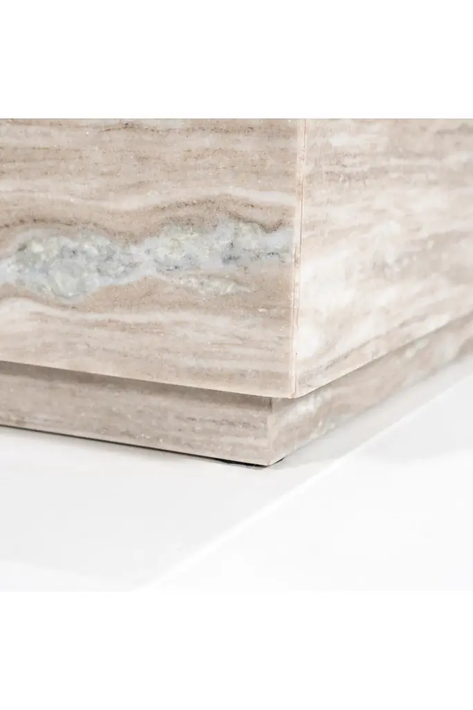 The Coffee Table Vince from Eleonora boasts a block of rectangular marble, showcasing captivating natural swirls that effortlessly draw the eye. Its sturdy surface invites gatherings, whether for morning coffee rituals or evening conversations. This striking piece serves as a focal point, anchoring the room with its unique charm and adding a touch of sophistication to any interior. Vince flawlessly combines style and function, promising to elevate the ambiance of any living space with its timeless elegance.
