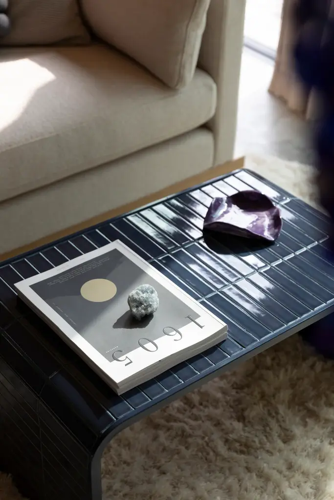 This table is specially designed to fit seamlessly between different sofa elements. Practical! But more than anything, the Tiles table is simply a stunning statement piece. It features a playful curved design, fully covered in elongated, lacquered tiles. And as if that weren’t eye-catching enough, it comes in a bold color that instantly brings your interior to life.
