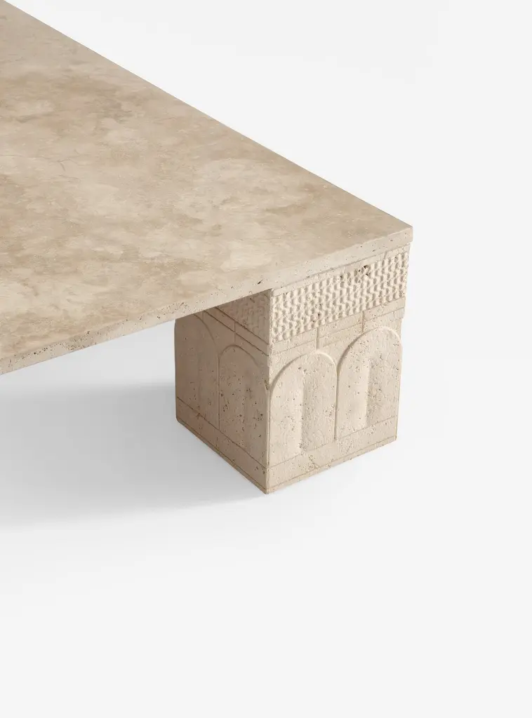 Landin Coffee Table by OHLA STUDIODimensions: D 110 x W 110 x H 30 cm Materials: Travertine de Veracruz.130 kgThis collection draws upon the earliest known works of representational art. From crude symbols painstakingly chipped into cave walls, stone carving is a practice that has been utilized by mankind for almost 800,000 years.Founded in 2017 by Giulia Zink and Mat Trumbull. We offer design services and creative consultancy with a focus on art direction, interior, and landscape design. Our client range includes brands of different scales: from real estate developers, retailers to boutique businesses.OHLA STUDIO works in union with artisans and localities steeped in centuries of craft and trade. We deliver individual, authentic evocations, both familiar and new, wrought from places we might have otherwise overlooked, wisened by knowledge we might have otherwise forgotten.We manifest age-old visions with contemporary possibilities.