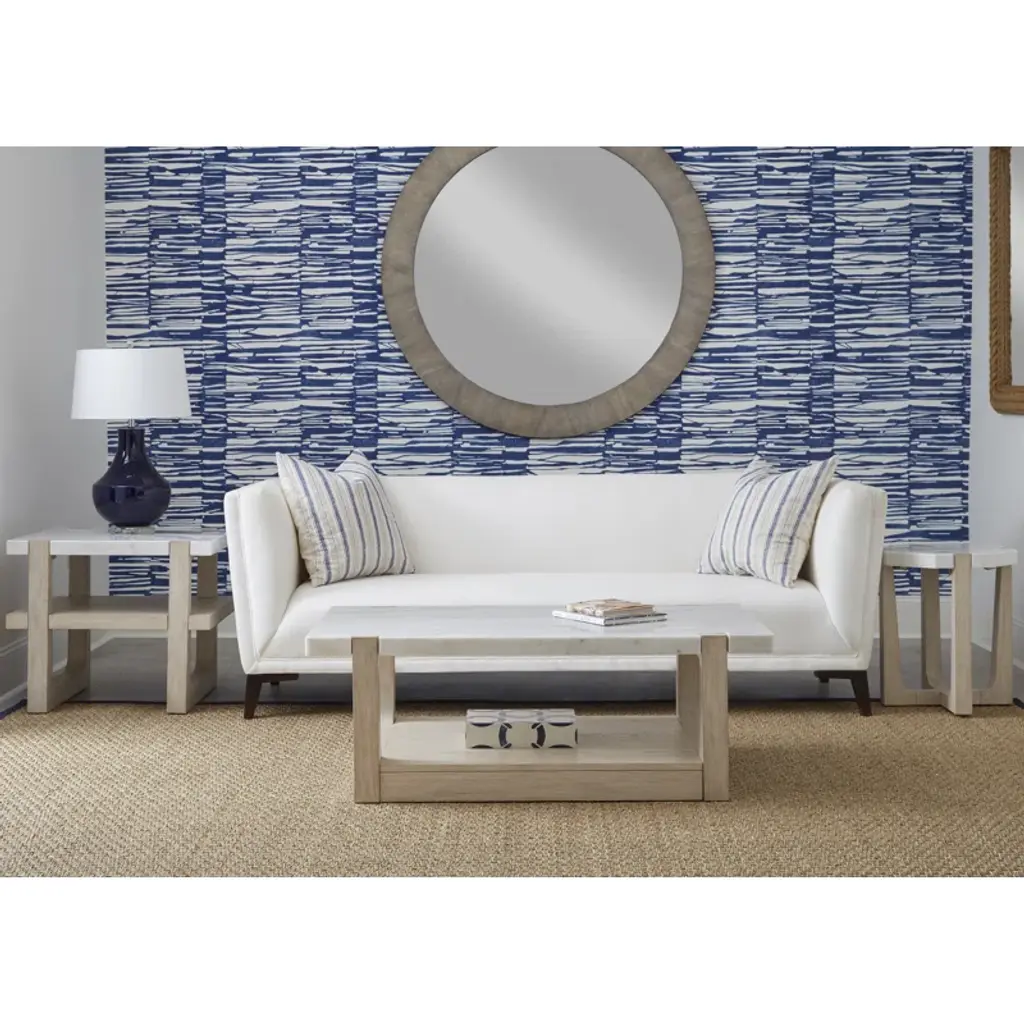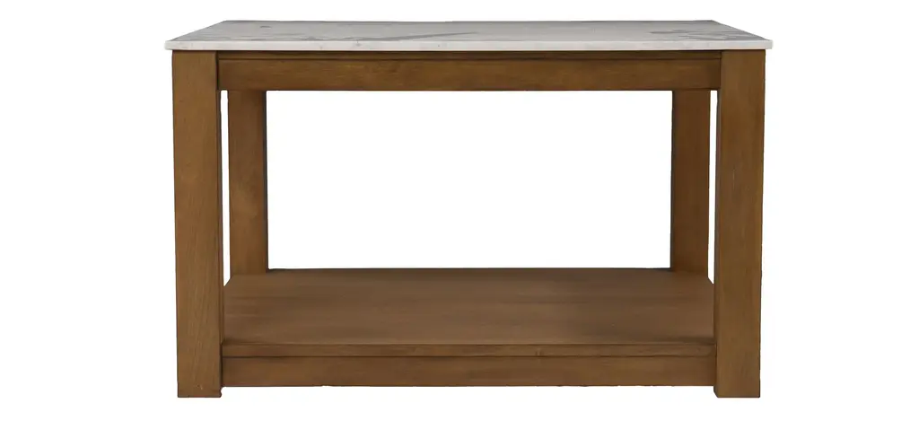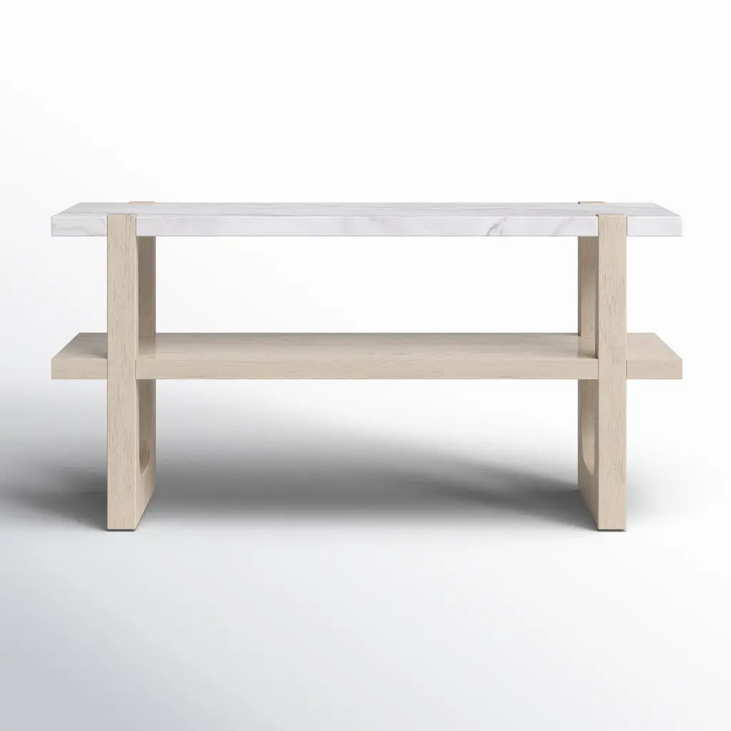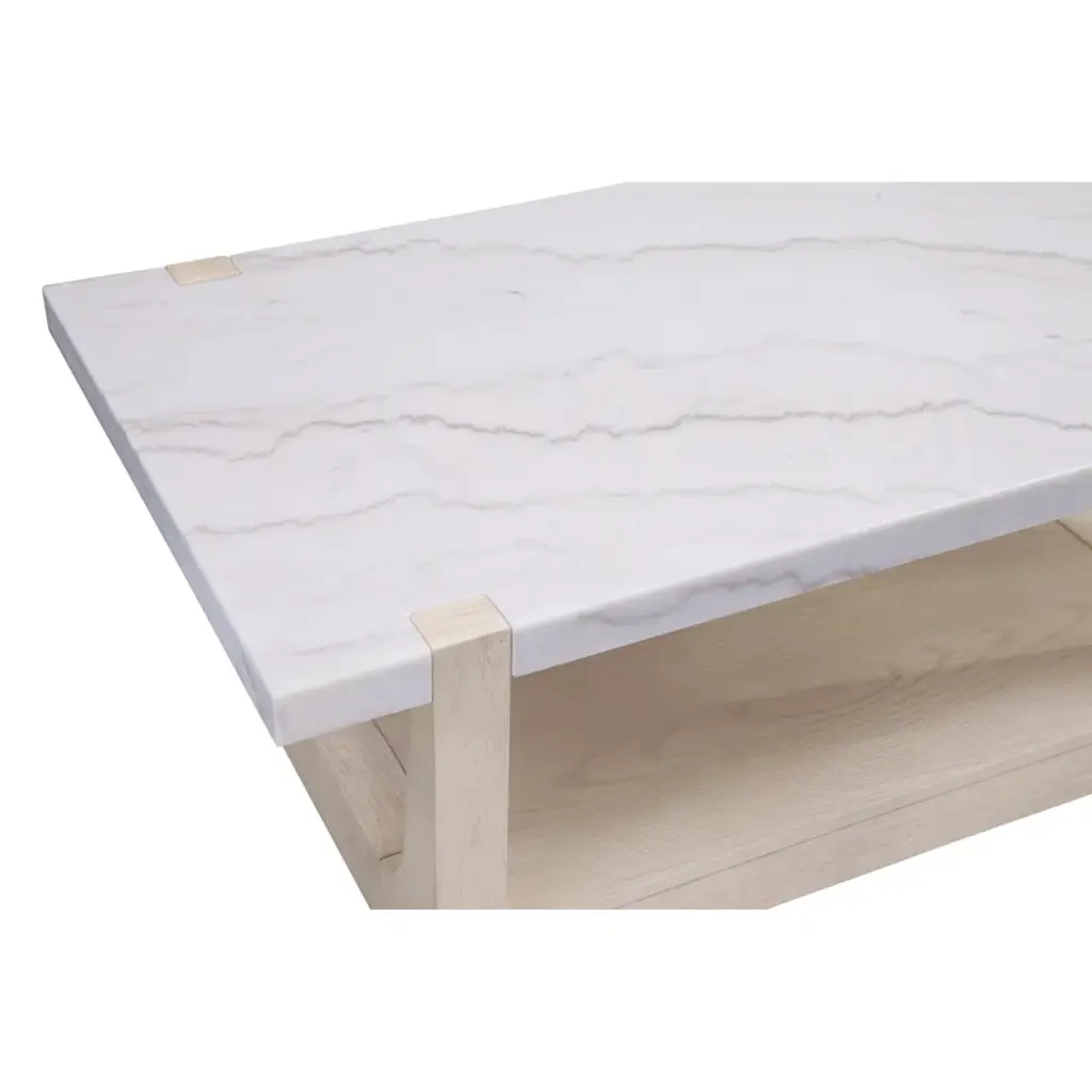 This coffee table combines sleek, modern style with bold materials. The top is made from genuine white marble with gray veining, while the solid ash wood base provides a sturdy foundation. The lower shelf offers handy storage. Pair it with matching pieces for a cohesive look in your space.