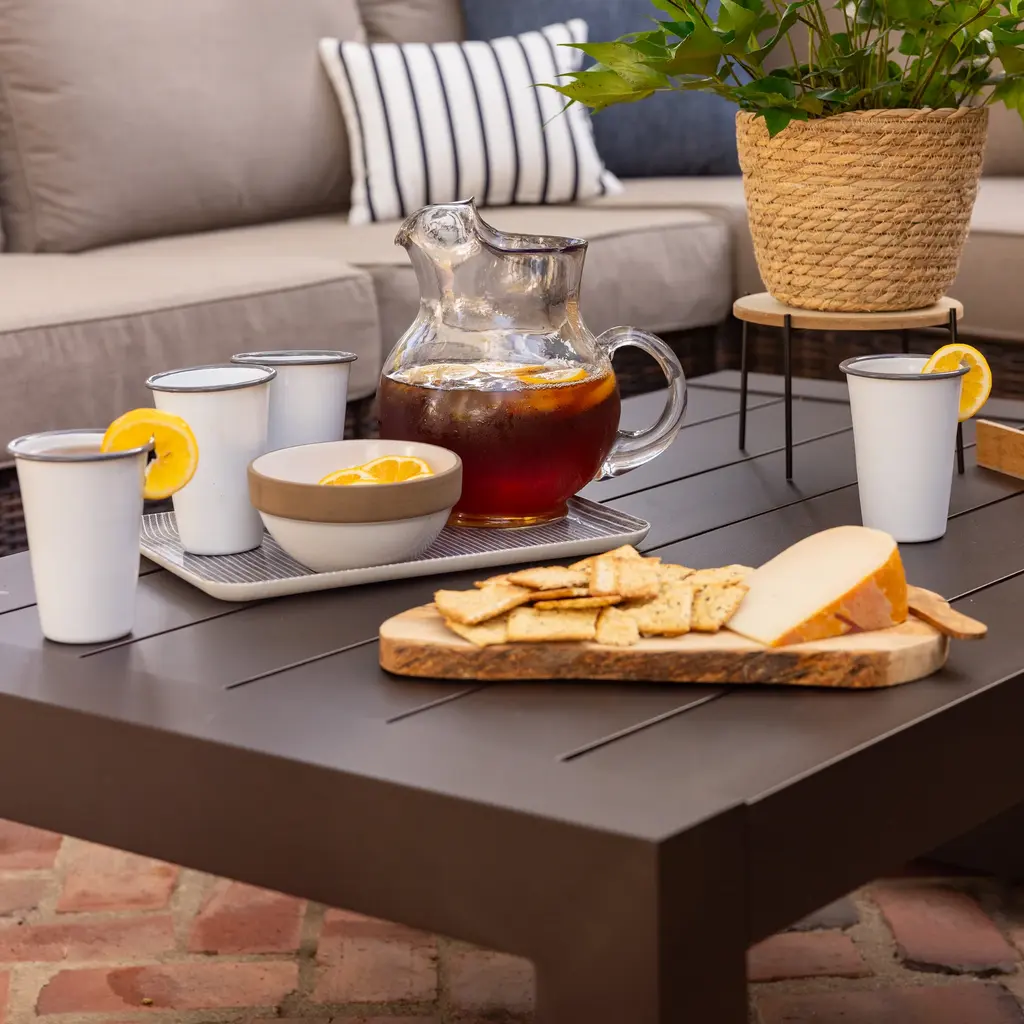 Langdon and Waverly offer beautiful, modular wicker designs – no wonder they are our most popular collections! Compatible with Langdon or Waverly pieces, this dark brown side table is made with commercial-grade, rust-proof aluminum.