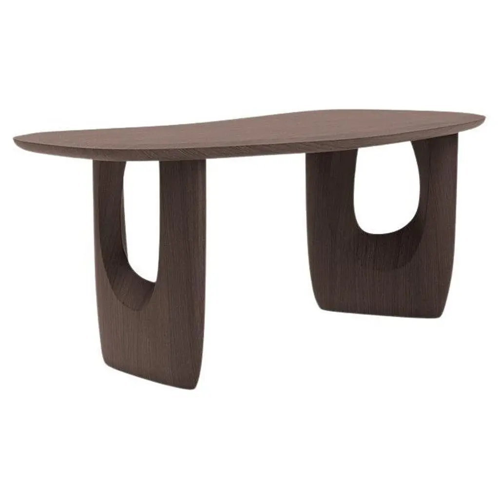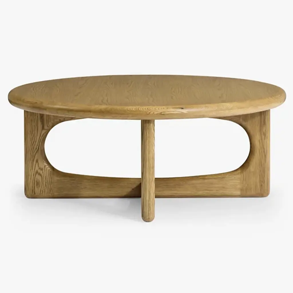 The Lantana Coffee Table from Alder & Ore is an alluring centerpiece with its rounded design and organic warmth. Crafted from a blend of solid oak, carefully selected oak veneers, and sturdy rubberwood, this table is a testament to fine craftsmanship. Its sculptural base, carved entirely from solid wood, serves as both a structural marvel and an artistic statement, celebrating the inherent beauty of wood with its natural grain patterns features across the outer surface.