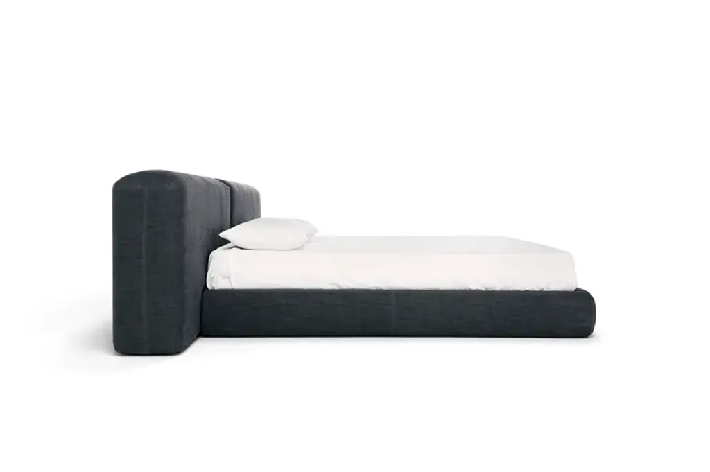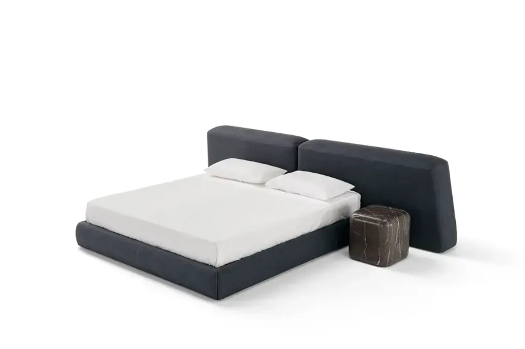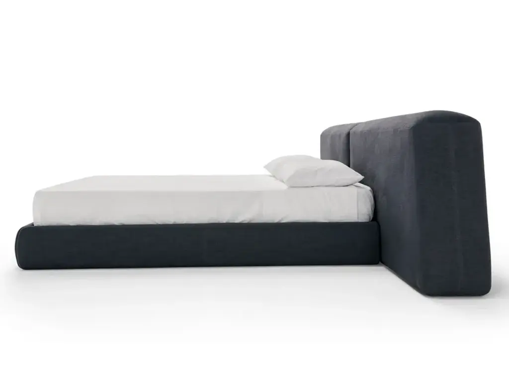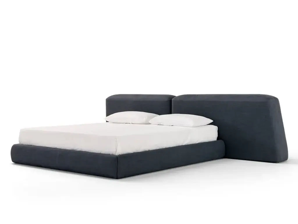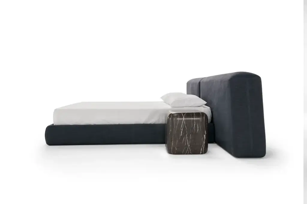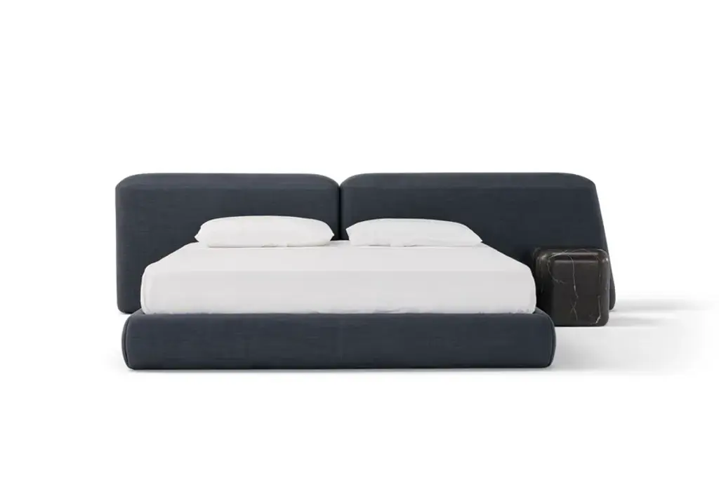 An ancient Roman road, paved with cobblestones smoothed by the passing of time, crops up from the woods, or from a grain field, and takes shape: geometries become tridimensional shapes and, in an unique game of volumes, morph into armrest. Its asymmetrical version gives the possibility to support a bedside table, proposed by Amura Lapis coffee tables collection. The backrest fillings are in memory foam for an excellent flexibility, resilience and non-deformability. FRAME: solid wood and multiply. UPHOLSTERY: polyurethane foam, density 30 kg/m³
