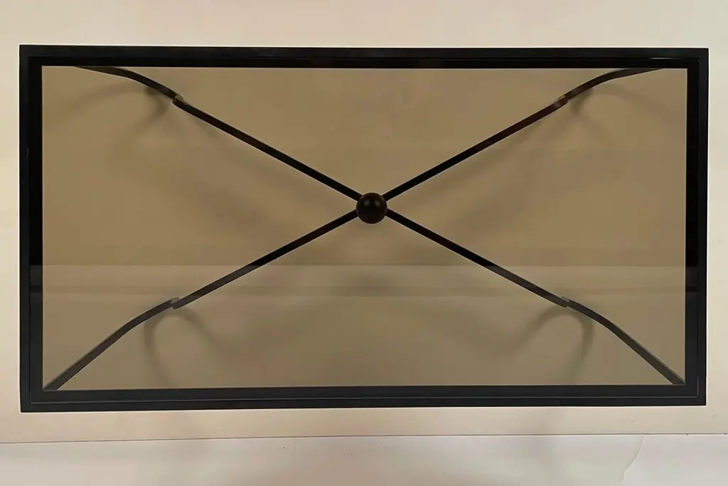 Large Blackened Iron And Glass 'Entretoise' Coffee Table By Design Frères