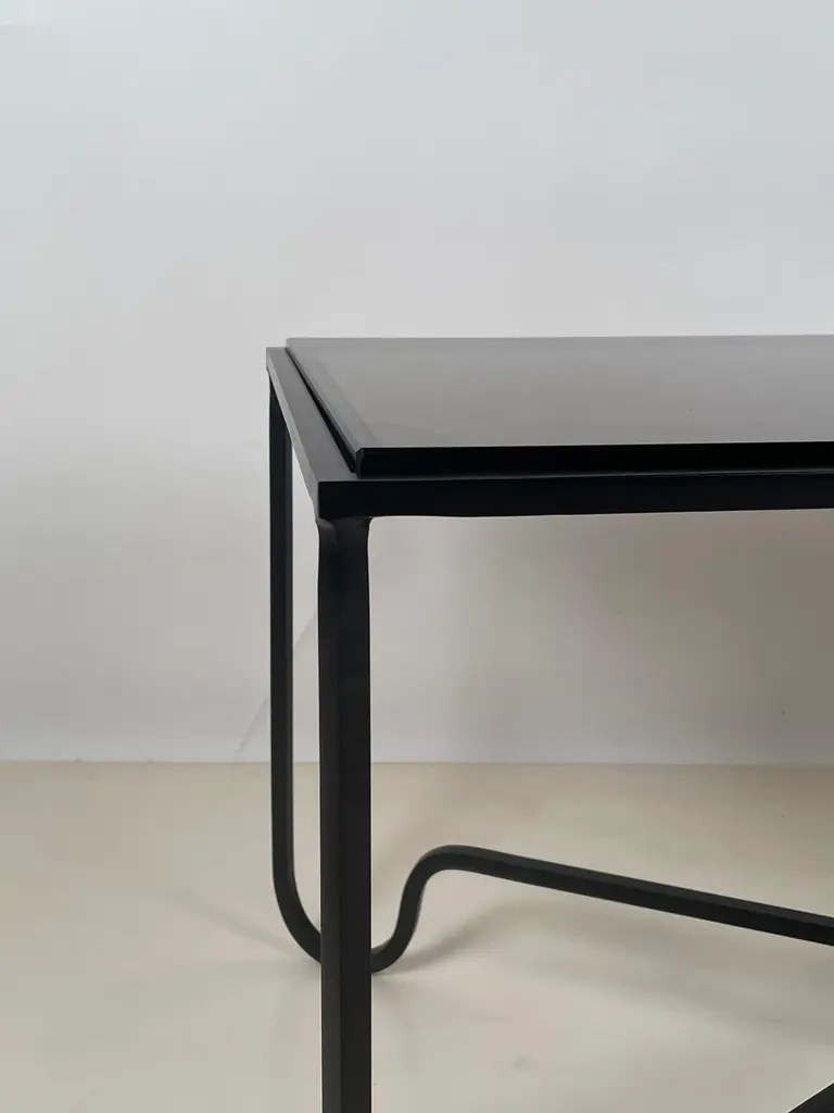 Large blackened iron and glass 'Entretoise' coffee table by Design Frères.In clear (last picture) or smoked glass (please confirm when placing our order).Chic and understated.