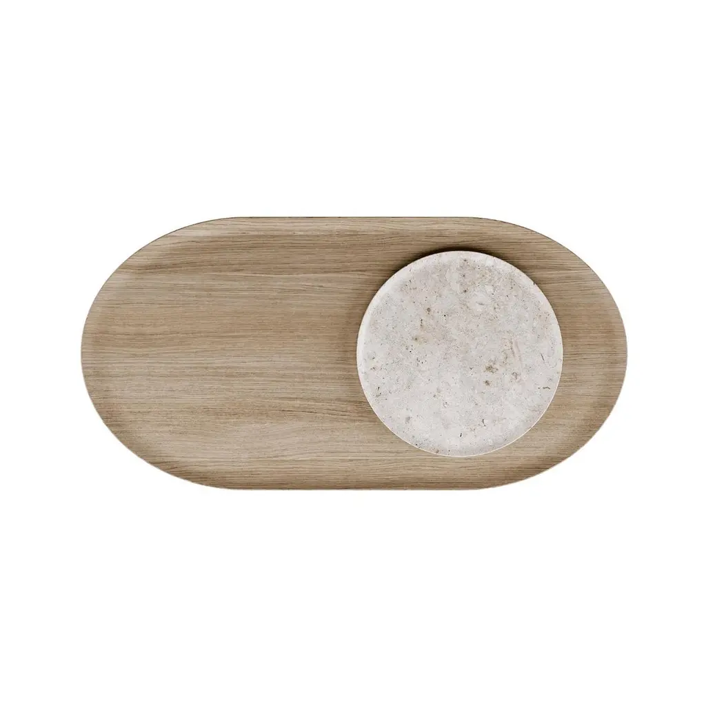 Large Bold Coffee Table by MohdernDimensions: W 140 x D 80 x H 30 cm (Marble Tray Included ⌀ 52 cm)Materials: Solid AshBold is a refined collection of coffee tables designed and produced by the Mohdern brand. Available in three sizes. Made of solid ash wood and marble.The Bold coffee table is an expression of the best Made in Italy, characterized by the use of the highest quality materials, such as wood and stone, and a design rooted in the Italian tradition of interior design. Ashwood, with its warm, natural beauty, lends a touch of authenticity to the Bold coffee tables. Its grain and tactility make each piece unique. Natural elegance goes perfectly with the most sophisticated interiors.The Bold coffee table is perfect either as a stand-alone piece, next to the sofa or armchair from the same collection, or, combined with models of different sizes, to create a fascinating interplay of shapes and heights.The large version includes a travertine tray with a velvet finish that enhances the natural appearance of the stone. The treatment is carried out by means of a high-pressure sand jet that makes the surface rough and matt without altering its flatness. While, the all-stone tables include a removable tray in the same finish.