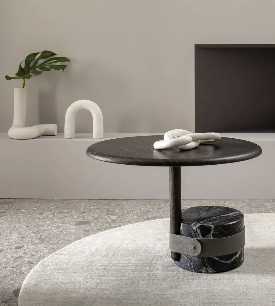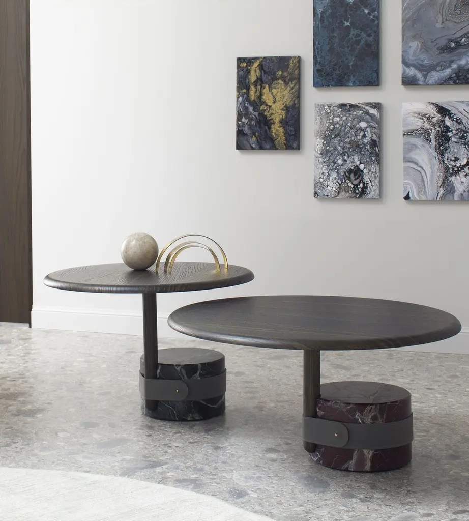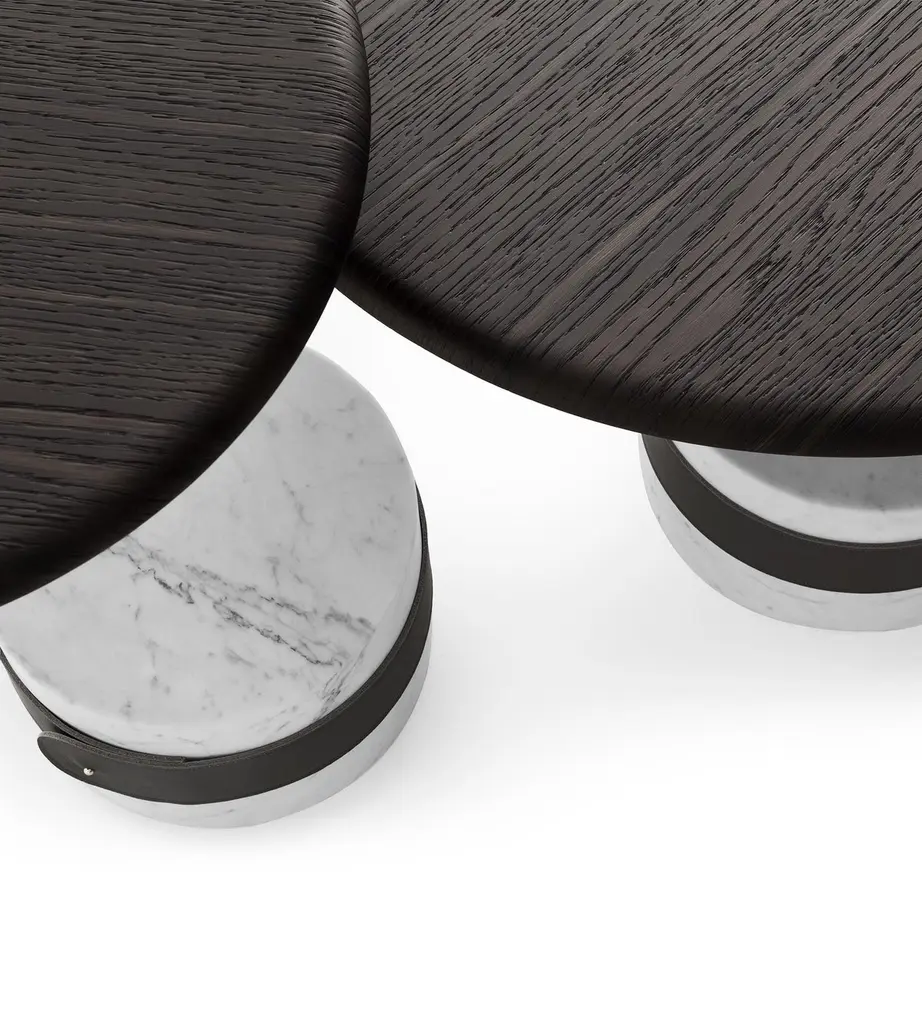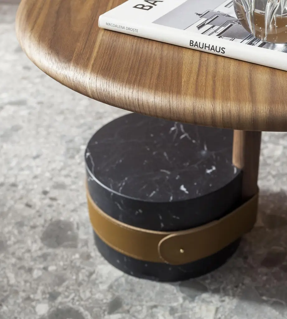 Large Champignon Coffee Table by Morica DesignDimensions: D 70 x W 70 x H 36 cm.Materials: Laguna oak, Anthracite leather, White Carrara marble.Available in Canaletto Walnut, Laguna Oak, or natural oak wood. Please contact us.Available in Anthracite or Cognac leather.Available in White Carrara, Black Marquinia, Red Lepanto, Travertino Romano, or Alpi green marble.Coffee table with a top in rounded MDF with real wood veneer. Structure in solid wood. Cylindrical base in turned and polished matt satin-effect marble with aesthetic clasp in genuine leather.The spark of an idea began with three brothers, Moreno, Riccardo, and Carlo, and the desire to provide genuine Made in Italy design furniture, delivered to customer homes directly from the factory.We guarantee our customers a controlled, certified supply chain and an excellent service that makes it easy for their items to be delivered directly to their homes.We are a fresh organization, full of ideas with the desire to make the world a better place, to change the way we consume by providing beauty, sustainability, and reliable service!