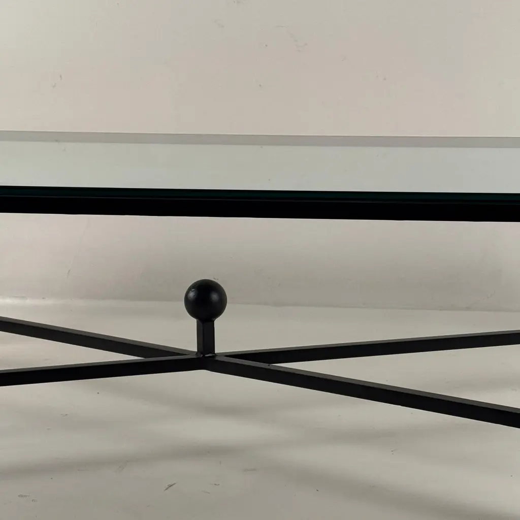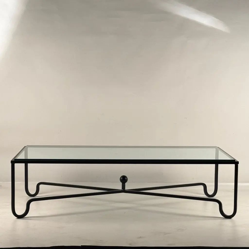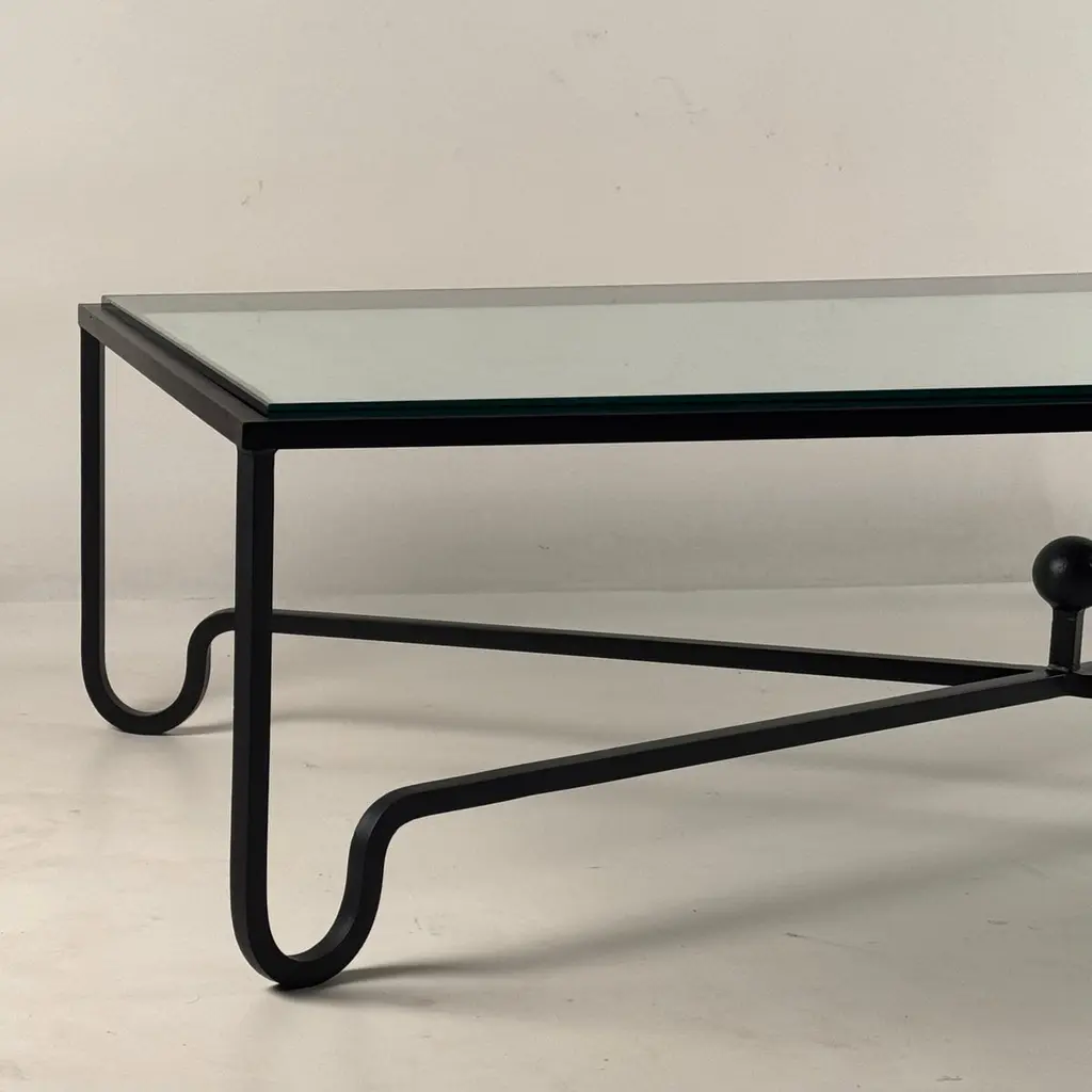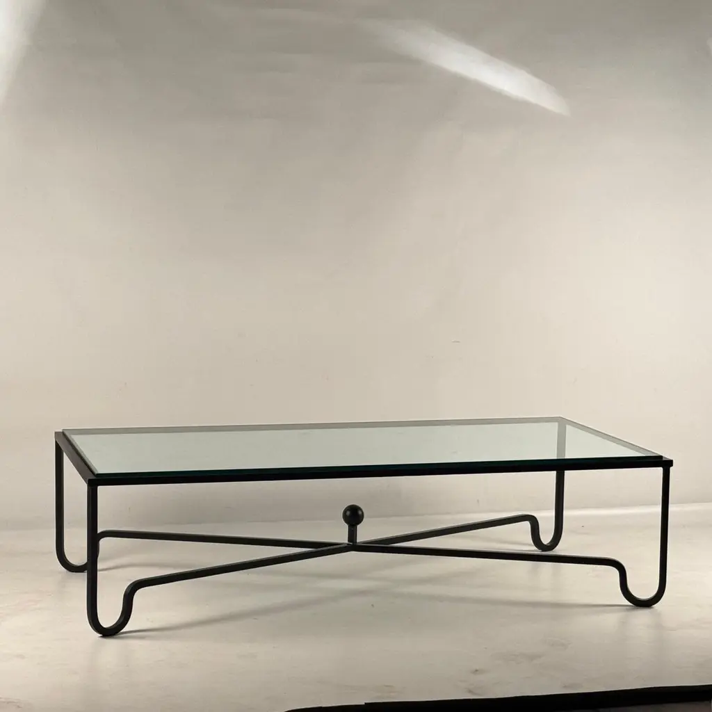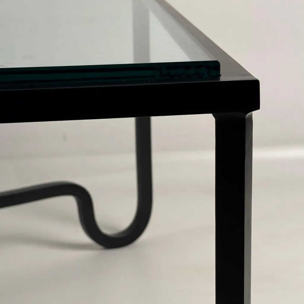 Large Entretoise™ blackened iron and thick tempered glass coffee table by DESIGN FRÈRES.Chic and understated.