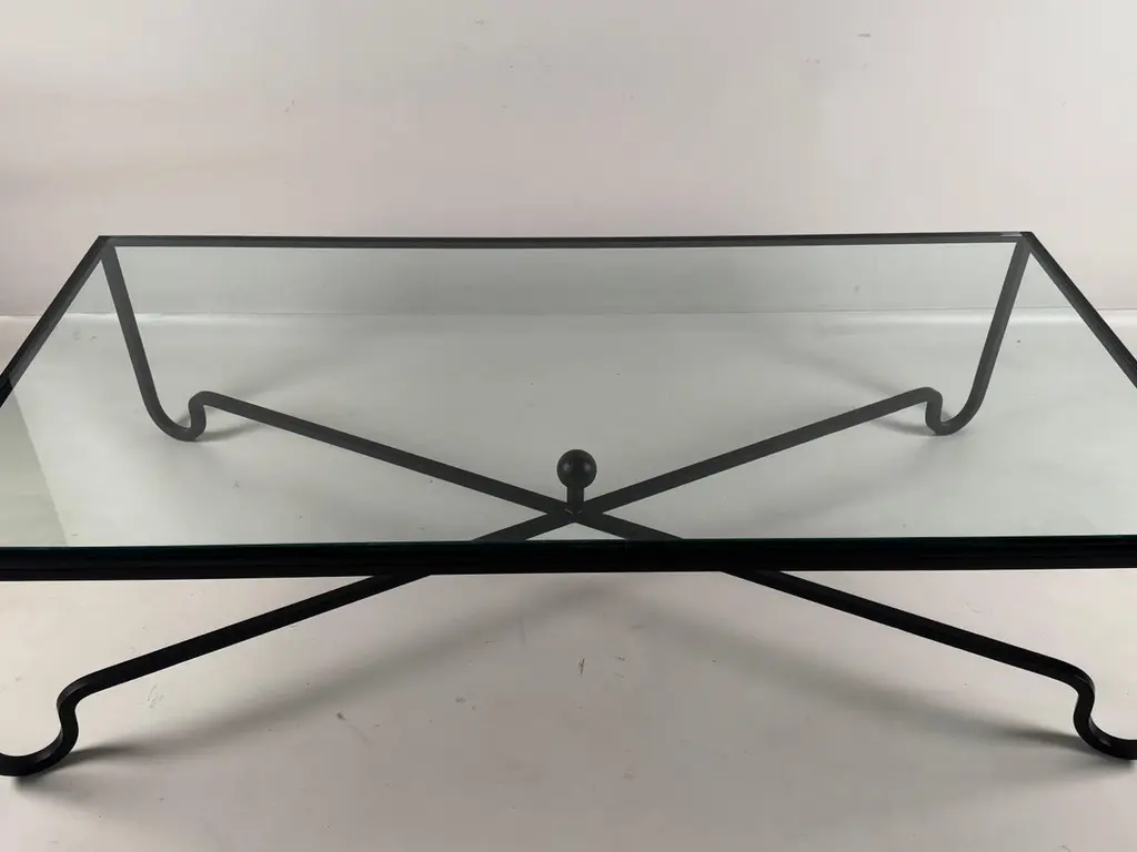 Large 'Entretoise' Blackened Iron And Glass Coffee Table By Design Frères