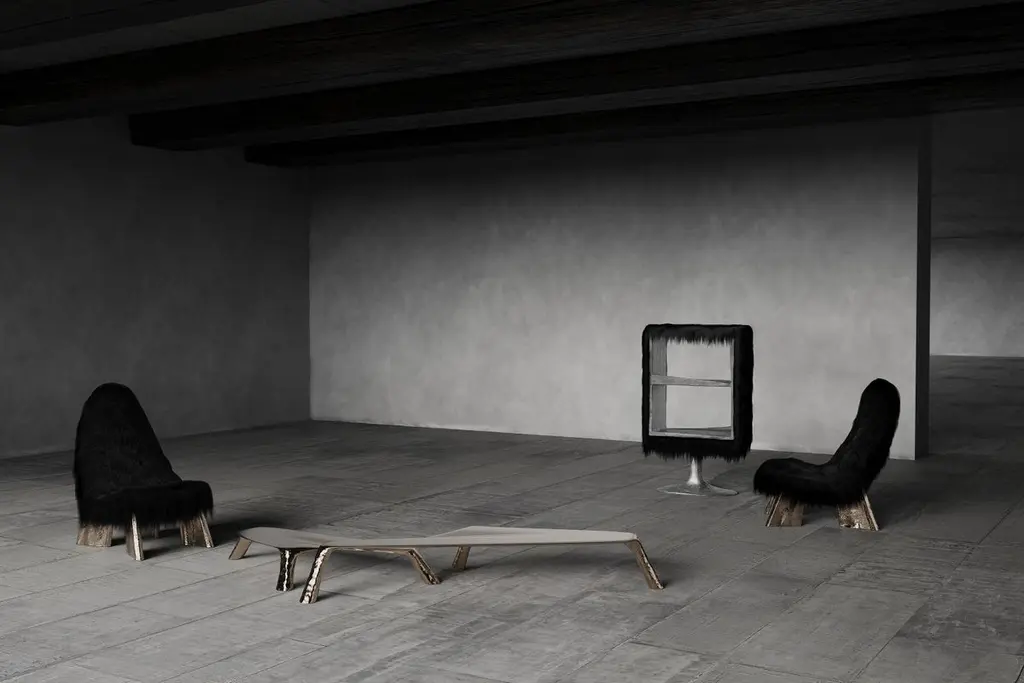 Large Merging Coffee Table by Atelier V&FLimited Edition Of 12+2AP Pieces.Dimensions: D 69.5 x W 206 x H 30 cm. Materials: Cast brass.「Merging Tables」, a set of two coffee tables, taking its shape from the unsteady posture of newborn calves, picture the moment of disorder before power and control set in. Three cast table legs holding up an uneven tabletop, form an entity that looks as if it was born directly from liquid, radiating a strong life force and reserving possibilities of transformations. The two pieces cross cross-placed, feature a female-male duo or a mother-son dependence, symbolizing the continuance of life. The smooth mirror surface with an extremely sci-fi touch is the light in the collection and in chaos, breaking out from the darkness and connecting all the pieces in the collection. Seen from above, it is just like a lake on Earth, the source of life.Atelier V&F was co-founded by Chen Furong and Vega Zaishi Wang in Shenzhen. Chen Furong graduated from the Shanghai Institute of Visual Arts, majoring in comprehensive design. And he started the design studios WUU and CHEN FURONG Studio. Vega Zaishi Wang graduated from the London College of Fashion and Central Saint Martin and founded the designer brand VEGA ZAISHI WANG. The designers’ professional background and artistic upbringing become the intrinsic character of Atelier V&F. Their expertise, professional knowledge, and years of experience in the design field are the fertile ground for the development and exploration of Atelier V&F that enable it to break the divide of territories and cultures, and with an inclusive narrative to interpret aesthetics and functionality. The two designers’ poetics of life and living, their respect for different materials’ true nature, and their unceasing pursuit of exquisite craftsmanship instill vitality into Atelier V&F’s works from artistic sculptures, installments, and space to practical and utilitarian objects. Vega’s intuitive riding on fashion’s romantic urge and flow andFurong’s philosophical perspective on practical design is combined in one artistic expression, making their works both detailedly practical and ceremonial. As a married couple, the duo instills powerful emotional strength to the work of Atelier V&F, trying to interpret and represent the non-utilitarian and simple beauty in a coldly rational and precise world.