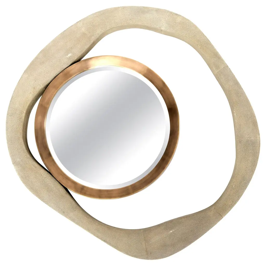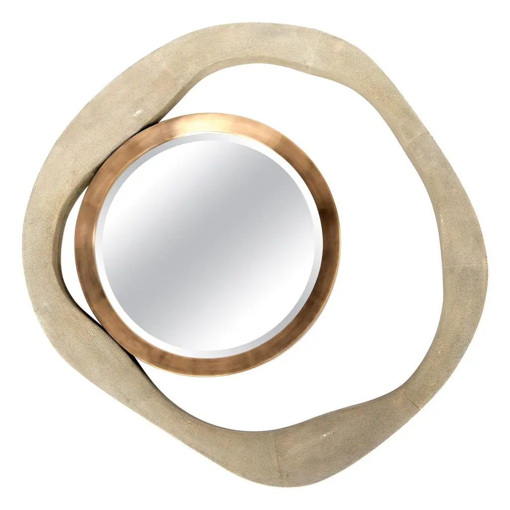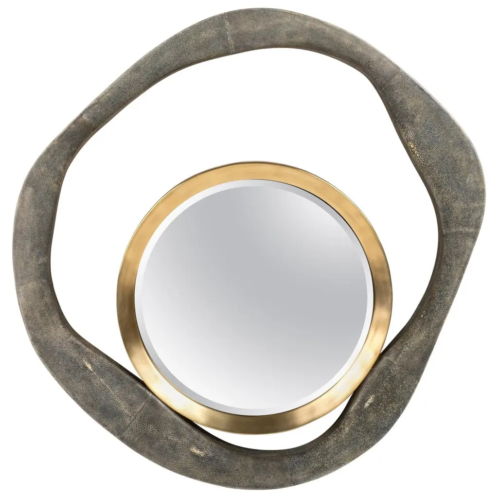 Large "Peacock" Mirror In Shagreen And Bronze-Patina Brass By R&y Augousti