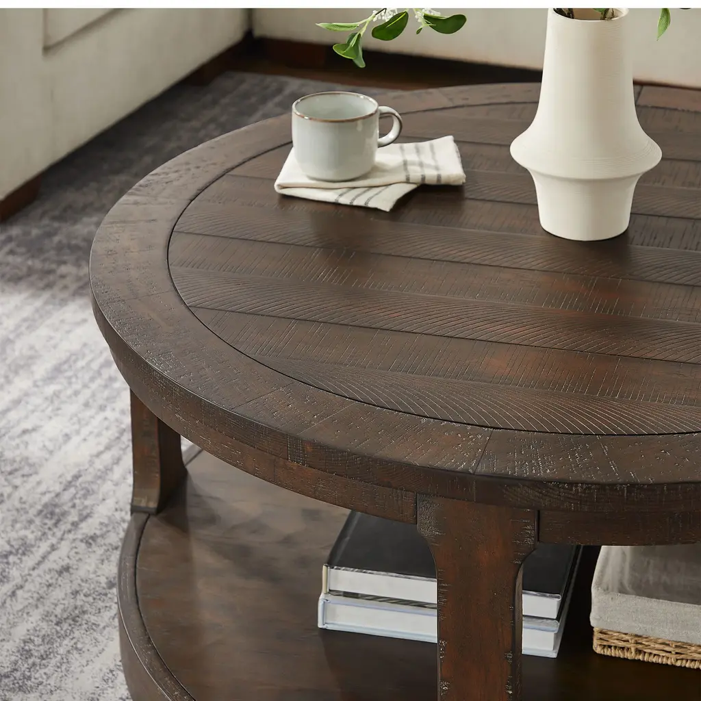 Skillfully constructed by talented artisans, the attention to detail on our 2-tier round wood middle coffee table is beyond brilliant. The exceptional elements that adorn every single inch of our unique circle coffee tables are truly unmatched and a sight to see. The round Coffee table has a large practical area. Its simple and clean-lined design is suitable for a variety of settings, whether you prefer traditional or contemporary decor. The tabletop is spacious, providing plenty of room for you to place your favorite beverages or reading materials while relaxing on your couch.