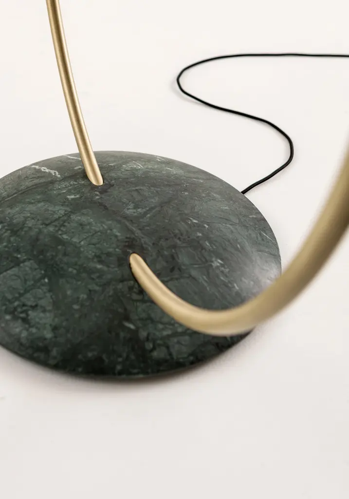 Coffee table with integrated light. Satin brass structure, polished Green Guatemala marble base, top in bronzed glass.The best furniture begins with great materials.To produce exceptional fine furniture, we only use high-end woods, metals, marbles, leathers and velvets and the most modern and exclusive textures.Carl is a coffee table with an essential line and a unique design. The brass tubular structure conceals a small light illuminating the bronze glass surface and intersecting with the Verde Guatemala marble base.CUSTOMIZATION:Available with base in Green Guatemala, Bianco Carrara or Nero Marquina marble.