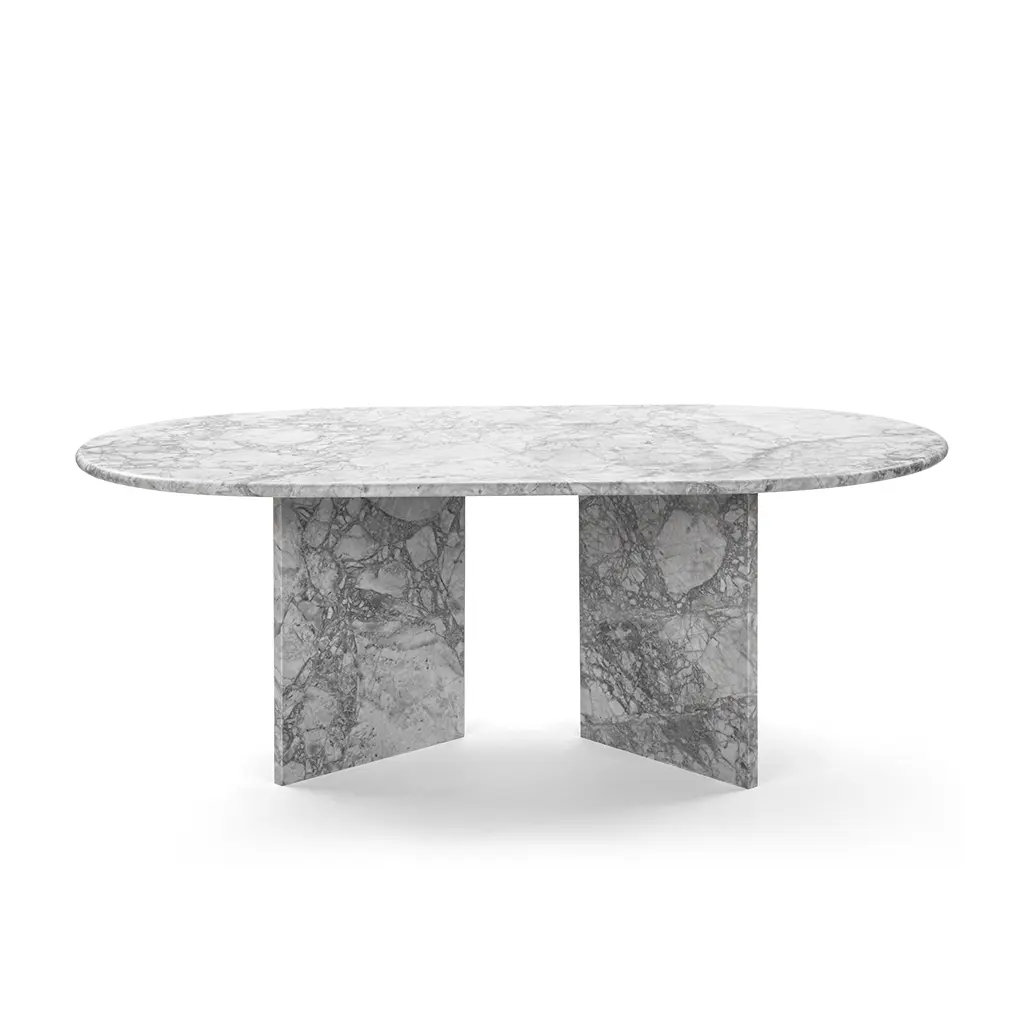 Crafted from imported Italian Super White marble or White Travertine stone, our exclusively designed Laurent Oval White Marble Coffee Table will always impress with its natural beauty. Its well-considered profile consists of an angled base to maximize aesthetics, while the exquisitely white marble and curvaceous lines ensure a design-led feel.