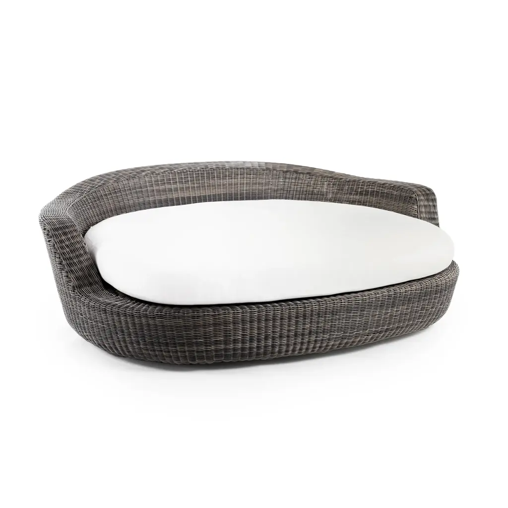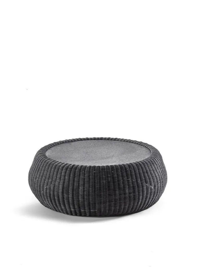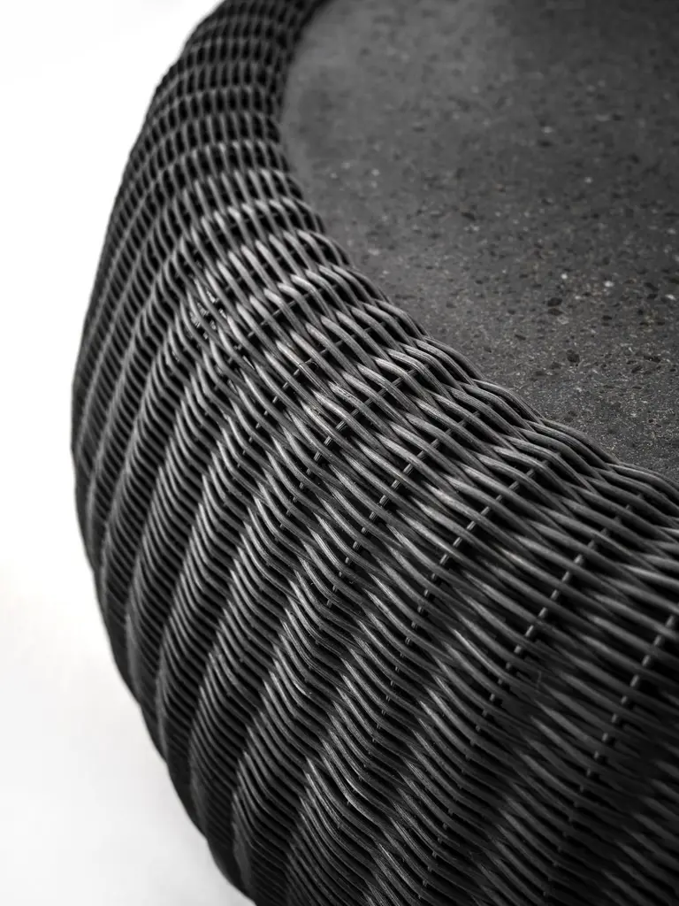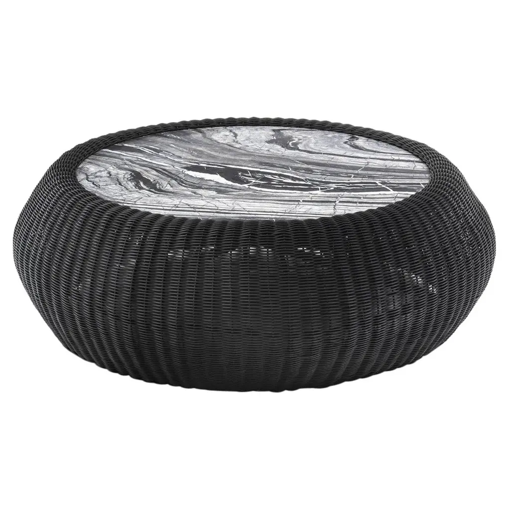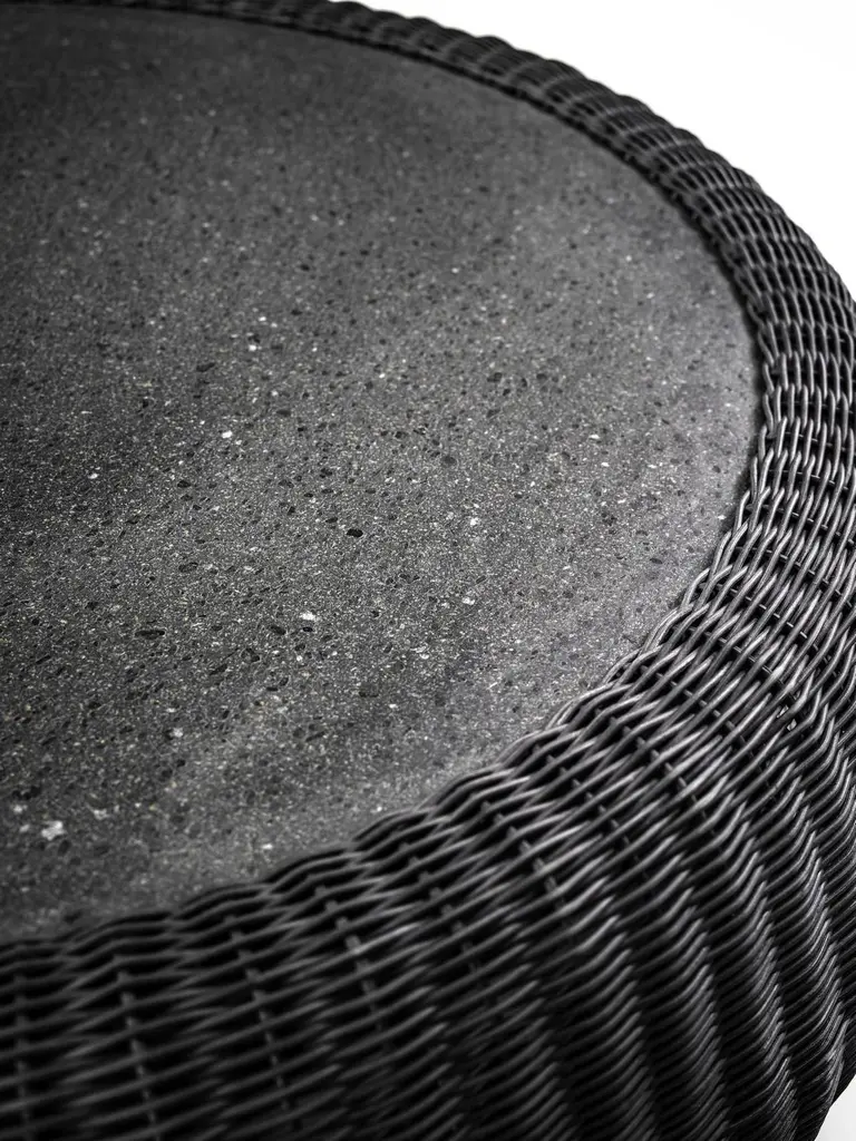 Lava stone "Amazonas" coffee table, Giorgio BonaguroDimensions: 40 height x 110 diameterMaterials: brushed lava stone, natural wicker The "Amazonas" collection designed by Giorgio Bonaguro represents the debut of Morfosi in the Outdoor area. Characterized by the use of marble combined with wicker, it is inspired by the luxuriant and exuberant nature of Brazil. As the vegetation of rainforest flows and spreads from the earth to the light, so the wicker is born from the marble and creates sinuous and elegant shapes that incorporate and support the stone. Two natural materials that are not simply combined, but intertwine to create new furnishing elements.The collection is characterized by: dining tables, coffee tables, side tables, lamps.Giorgio Bonaguro studied mechanical engineering in Modena and then graduated at Scuola Politecnica di Design in Milan, in the double Master of Industrial and Interior Design. He has worked in several design studios in Milan, first at Lorenzo Palmeri's, then with Francesco Faccin, at Michele De Lucchi's Studio. And then with the designer and critic MarCo Romanelli. He collaborates with several companies and develops limited editions presented at some international fairs such as Salone del Mobile, Design Miami, London Design Festival, Maison et Objet, Design Days Dubay, etc. He works between Italy and Brazil in the field of product design, interior design, exhibition and lighting, trying to combine a linear style with research and contamination between materials.