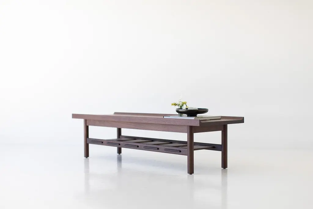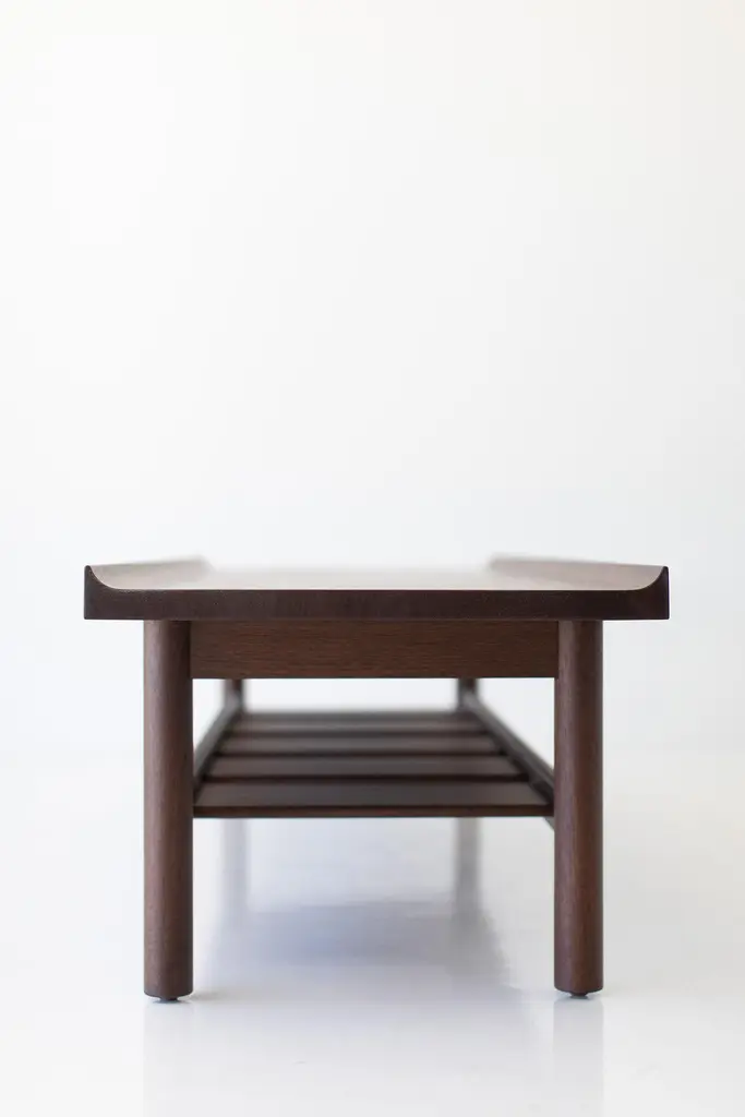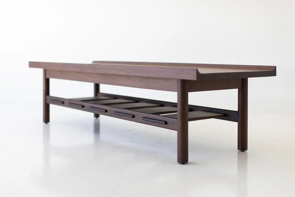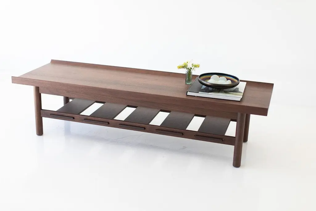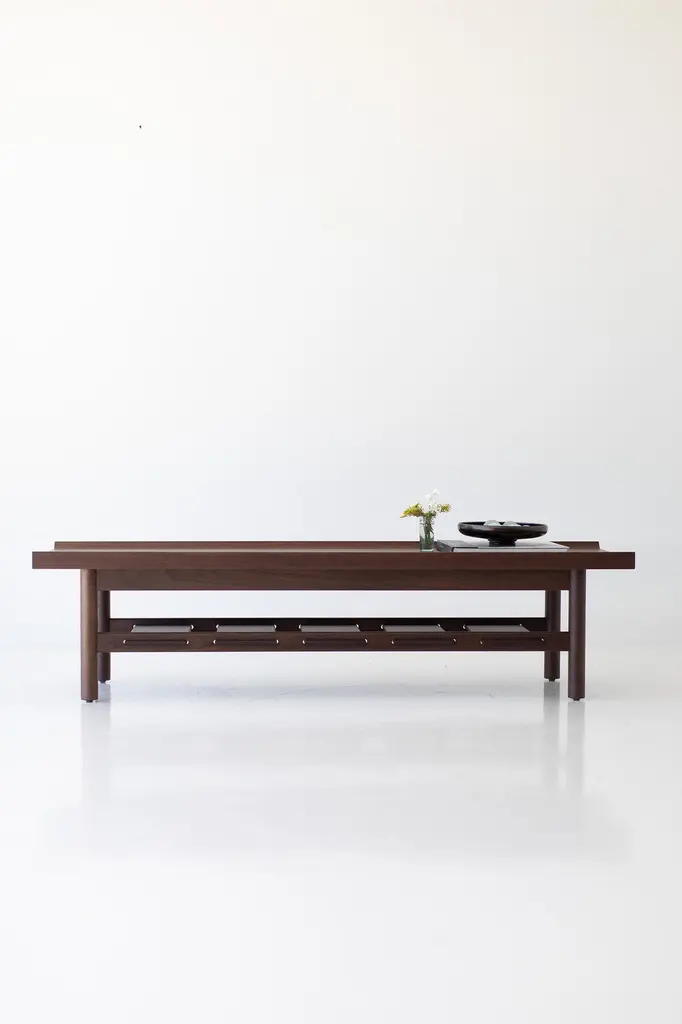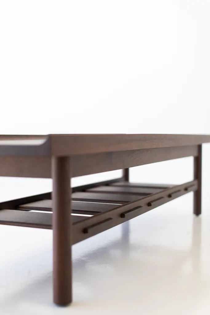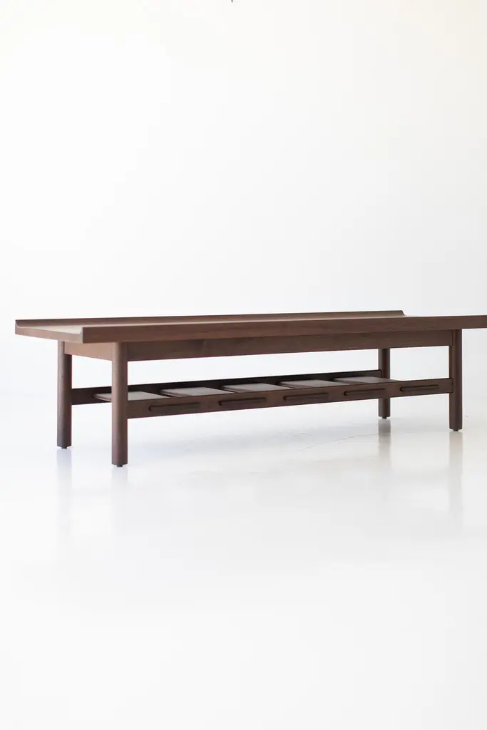 Lawrence Peabody modern coffee table for Craft Associates FurnitureThis Lawrence Peabody modern coffee table for Craft Associates Furniture is expertly crafted. The coffee table is constructed by artisans from Walnut. This table is available in walnut, teak or elm. Craft Associates Furniture is proud each piece is made in the US. They strive to craft a product that will stand the test of time. They use the best materials and have the best craftsman in the business. We stand 100% behind their product. Designer: Lawrence PeabodyManufacturer: Craft Associates Modern FurniturePeriod/Model: Mid-Century ModernSpecs: WalnutDimensionsH 15.25 (38.74cm) L 60 (152.4cm)D 19 (48.26cm)HistoryLawrence “Larry” Peabody (1924-2002) was an architect, interior designer, and furniture designer. As an American born in Haverhill, Massachusetts, his distinctive design were often influenced by his Scandinavian roots. Lawrence studied at the Royal Academy of Fine Arts in Copenhagen, Denmark and at the Rhode Island School of Design. His early career with Selig Mfg. Co. was prolific and helped put both himself and Selig on the map for modern furniture. He then started Lawrence Peabody & Associates in 1955, a design firm in Boston which included a vast client list (Sears, Roebuck & Co., Kohler, Regal Rugs, Boyd Lighting, Chapman Lamps, and Richardson Brothers). In 1961, Mr. Peabody won a Citation for Merit for his Peabody Collection for Richardson/ Nemschoff. Winner of the 1962 International A.I.D. design award for his wood frame rattan cradle chair, he also received the Walnut Classic Award for outstanding established collection of furniture executed in walnut. Craft Associates Furniture is honored to have acquired the rights to produce licensed Lawrence Peabody designed furniture.