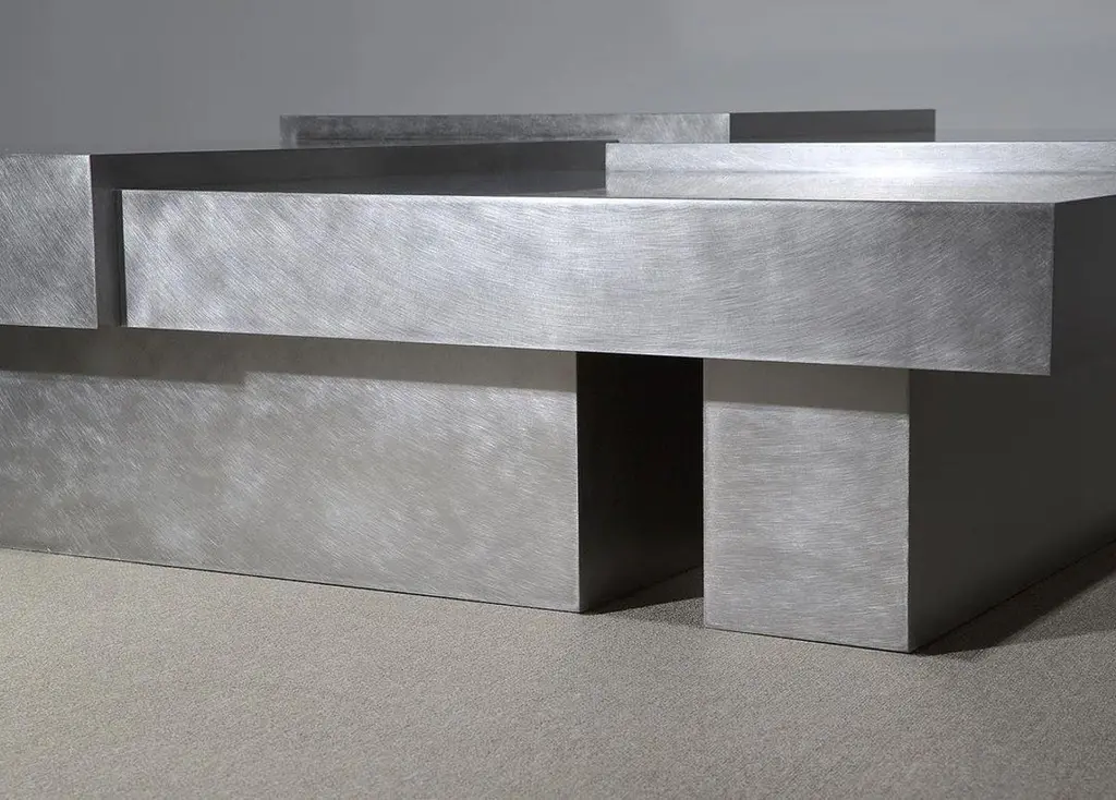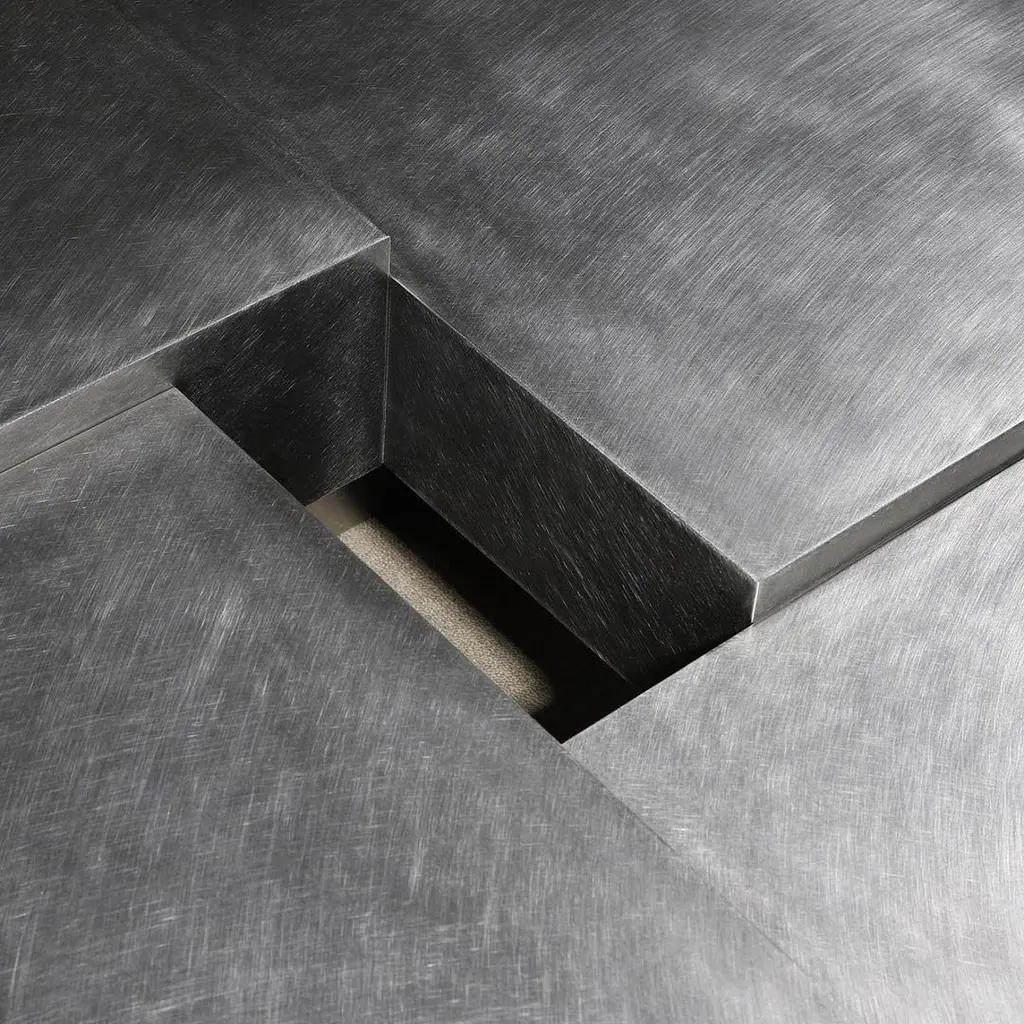 Layered steel coffee table II by Hyungshin HwangDimensions: D 160 x W 120 x H 42 cmMaterials: stainless steelLayered Series is the main theme and concept of work of Hwang, who continues his experiment which is based on architectural composition of layering materials we can easily find around us. This series starts from his childhood memory of an incessantly transforming city with full of geometric architecture. Ever since the beginning of his career when he piled up discarded bricks or concrete pieces to make simple pieces of artwork, he has always experimented with layering.Born in Seoul, 1981, Hyungshin Hwang is a Korean designer based in Seoul. He graduated B.F.A and M.F.A from Hongik University. Currently working in Seoul he has produced a variety of objects and is participating in various projects. He has been articulating ordinary experiences and past memories through creating objects and recently continues his work with his idea of ‘layered series’. These objects premiered at KIAF in 2007, and have since been presented in various shows including DMY Berlin Design Festival.